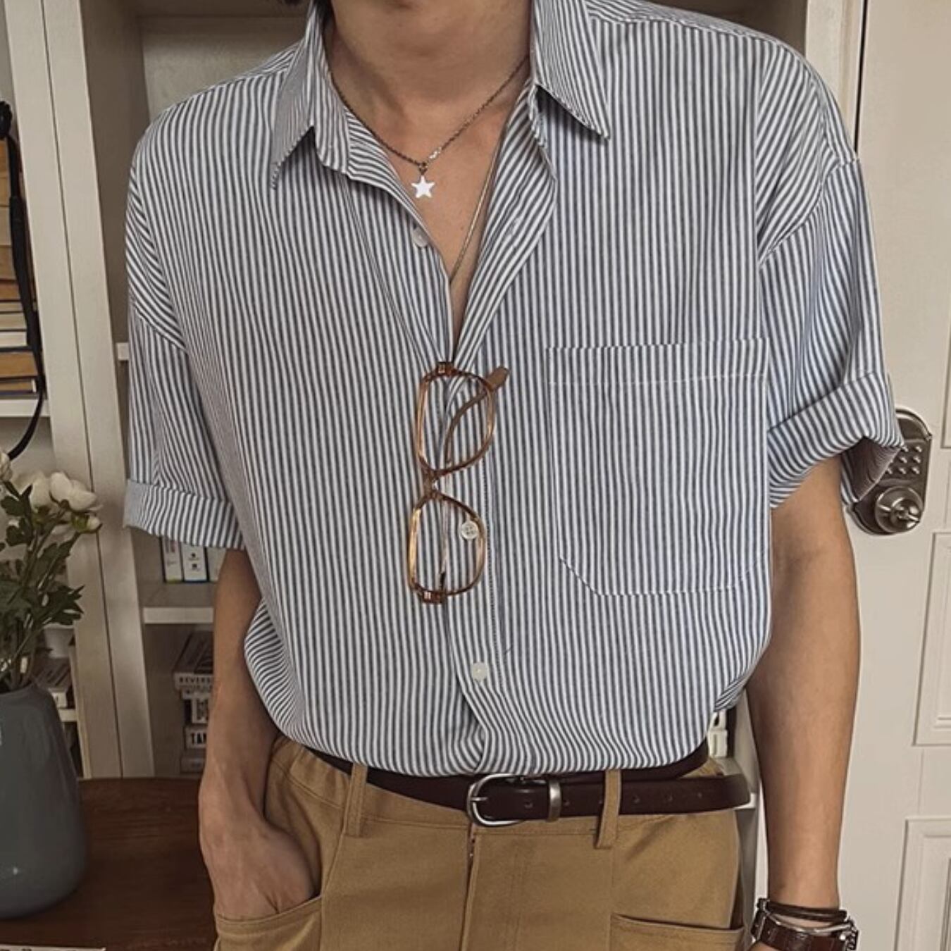 シャツを出しても、タックインしてもサマになる。