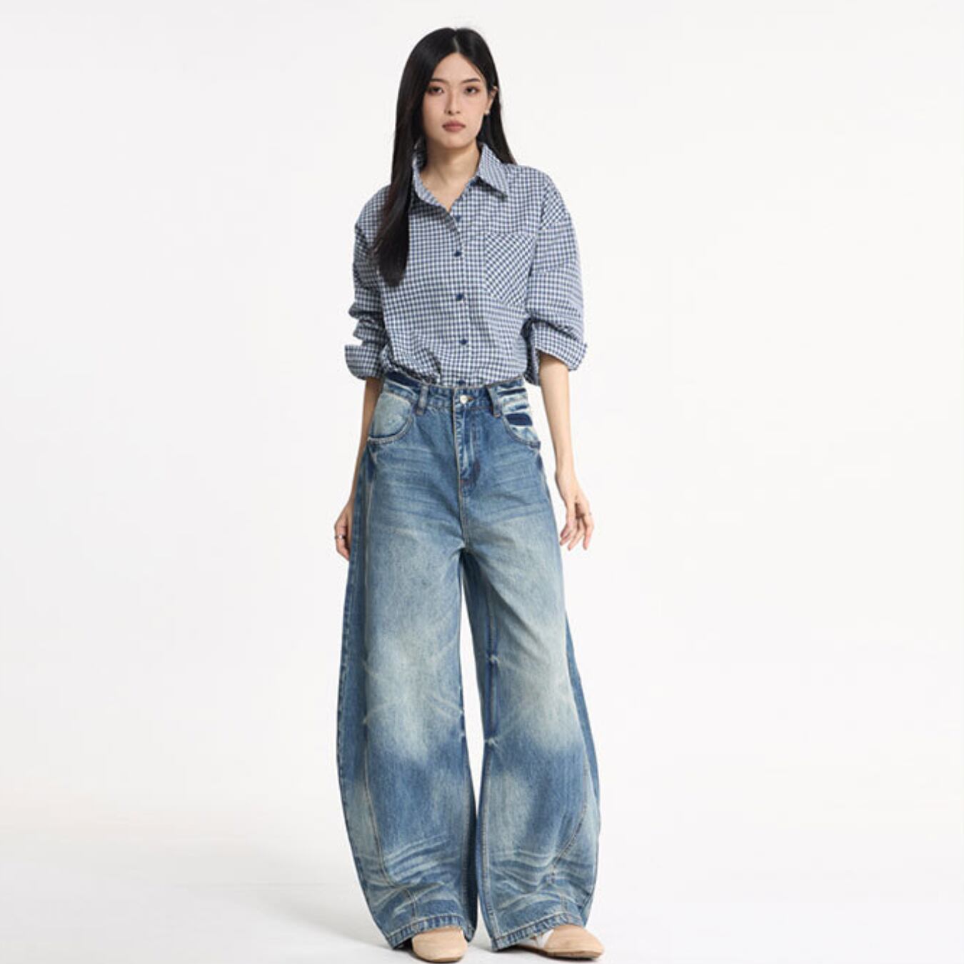 裾までしっかり広がるバギー感が、シンプルなトップスを合わせるだけで“今っぽい”スタイルに。