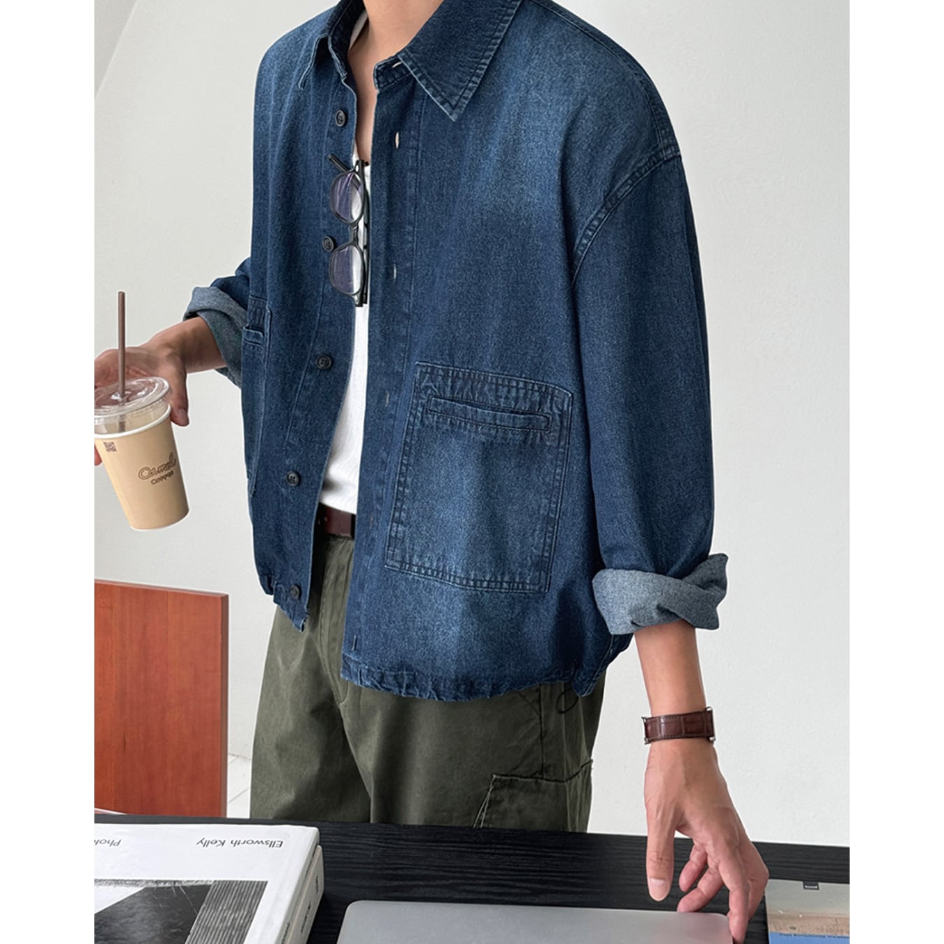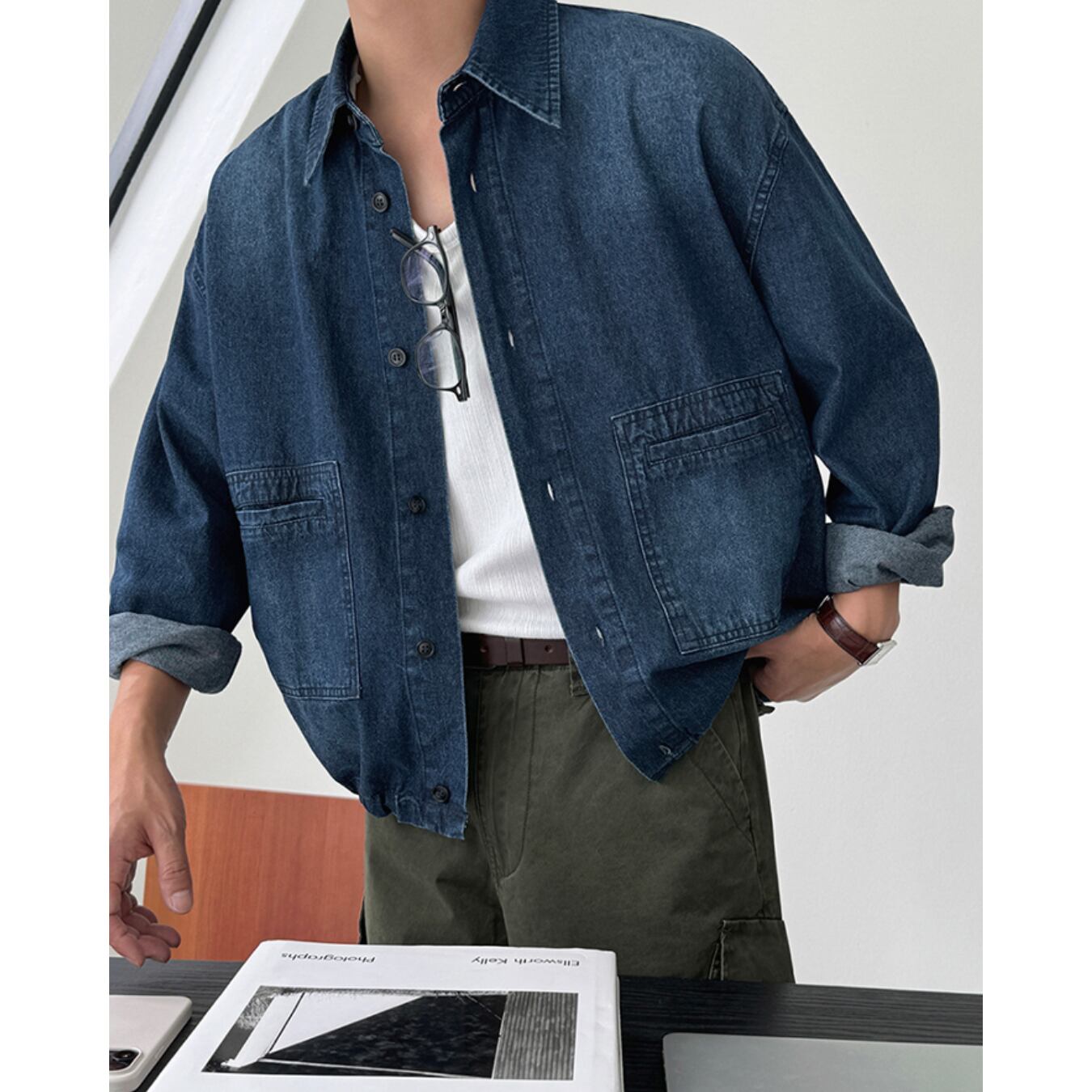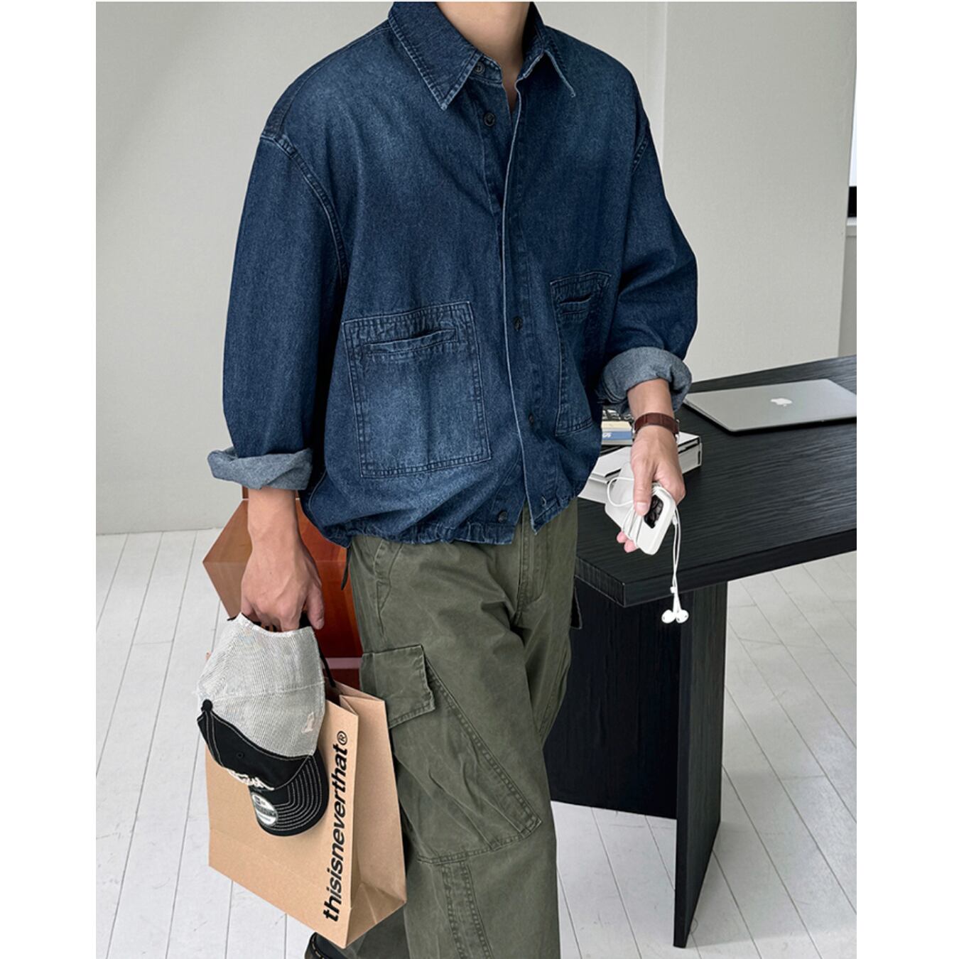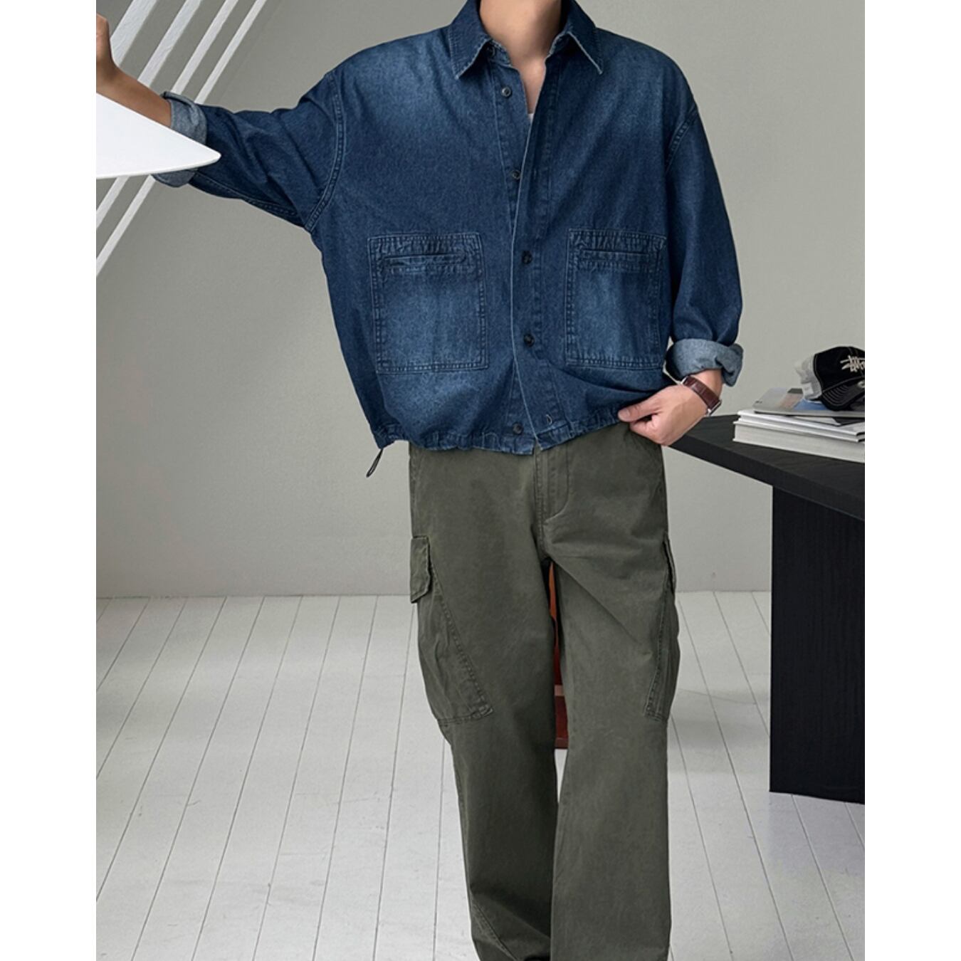 【短丈シルエットで魅せる、都会派デニムシャツ】