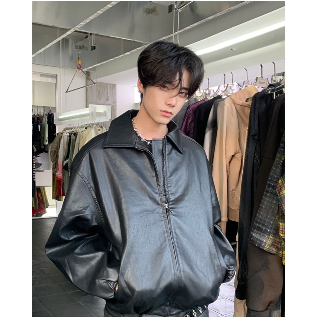 ・デニムやカーゴパンツに合わせれば、韓国系ストリートスタイルが完成。