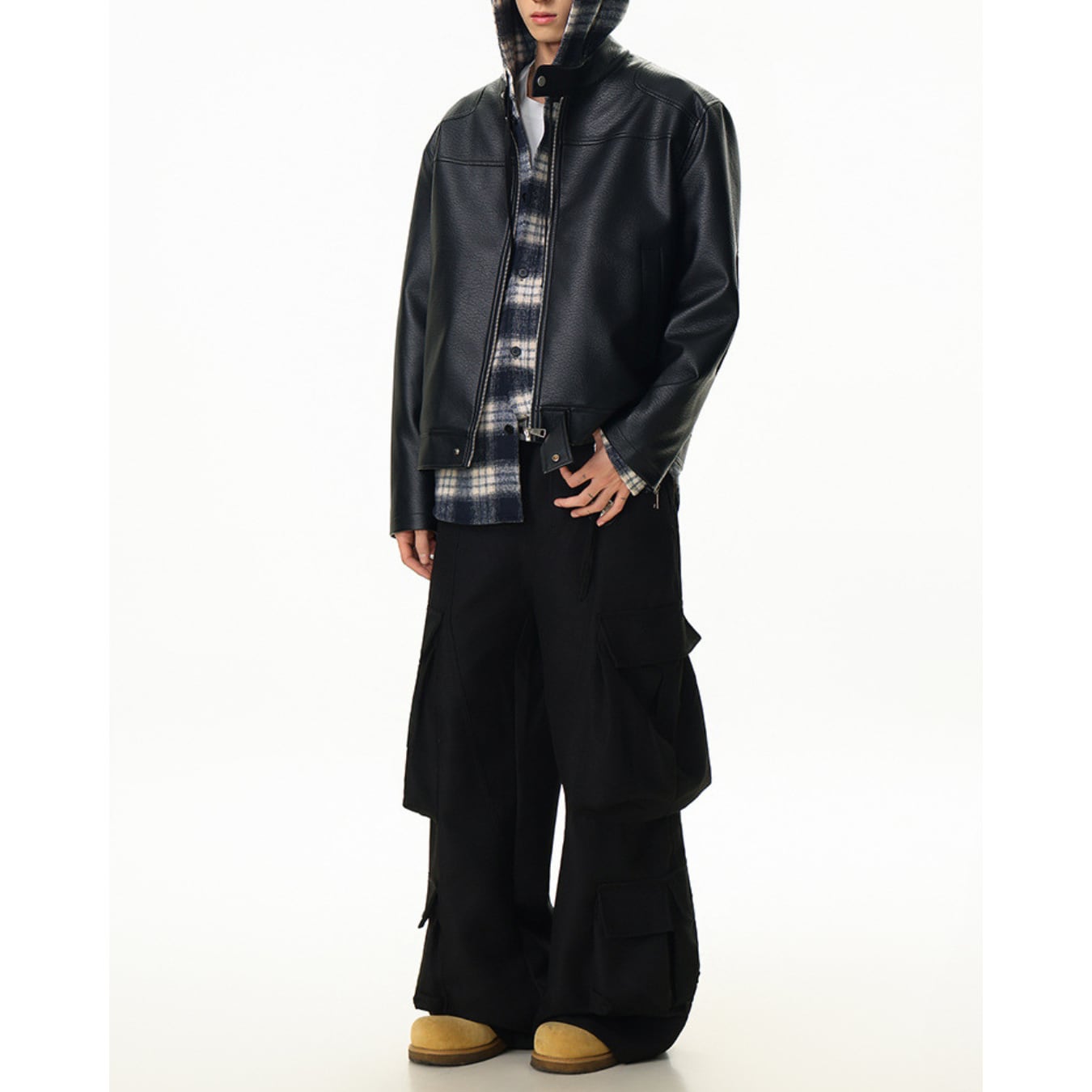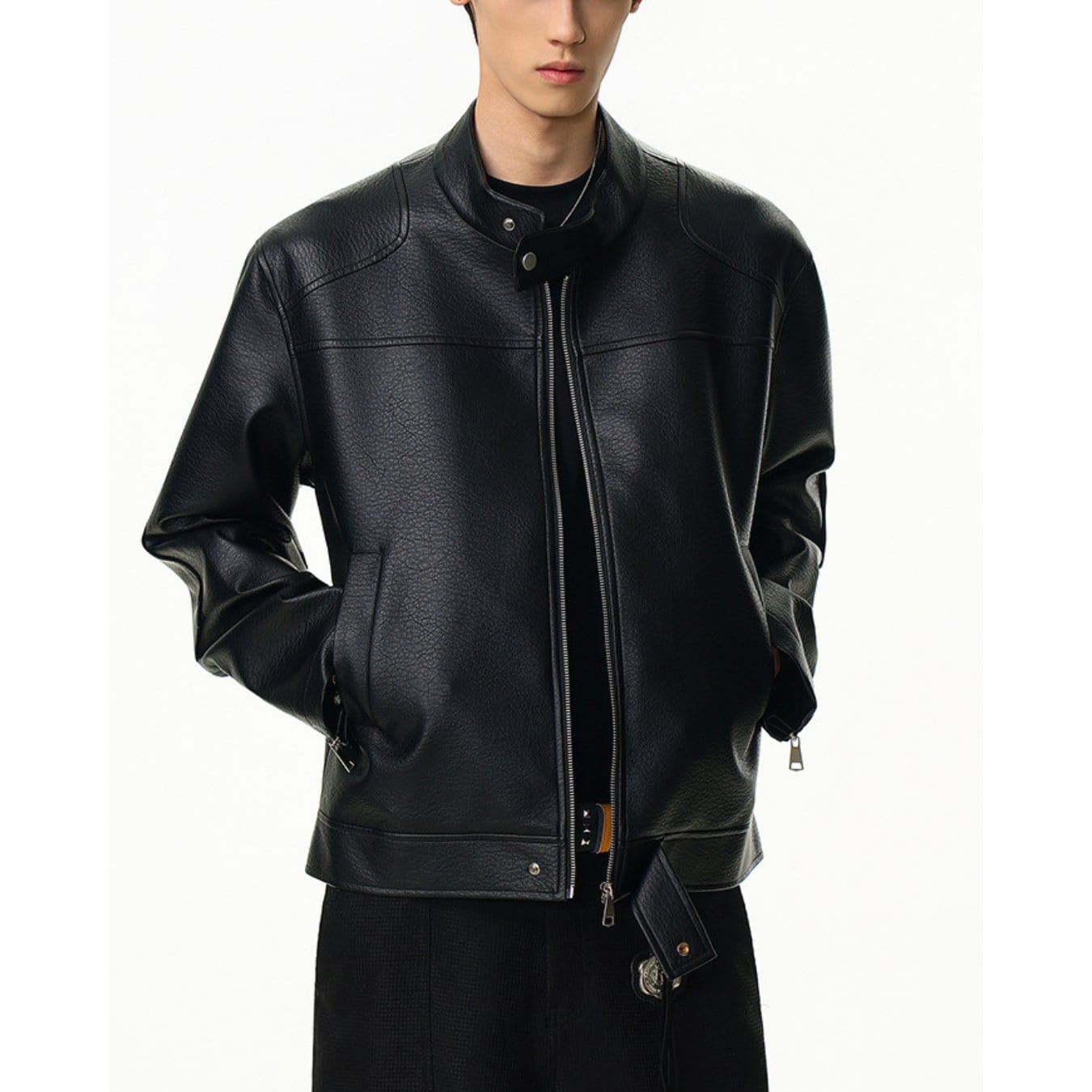 無駄を削ぎ落としたデザインで、どんなコーデにも馴染むPUレザージャケット。