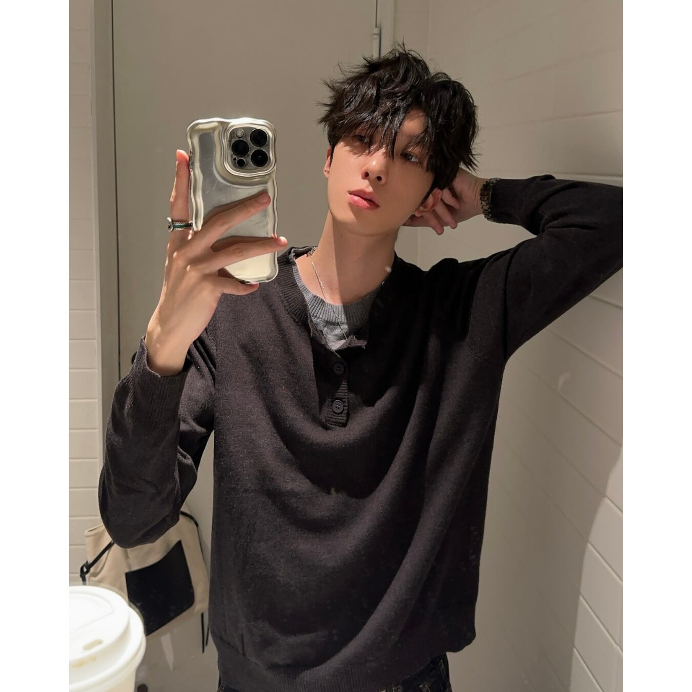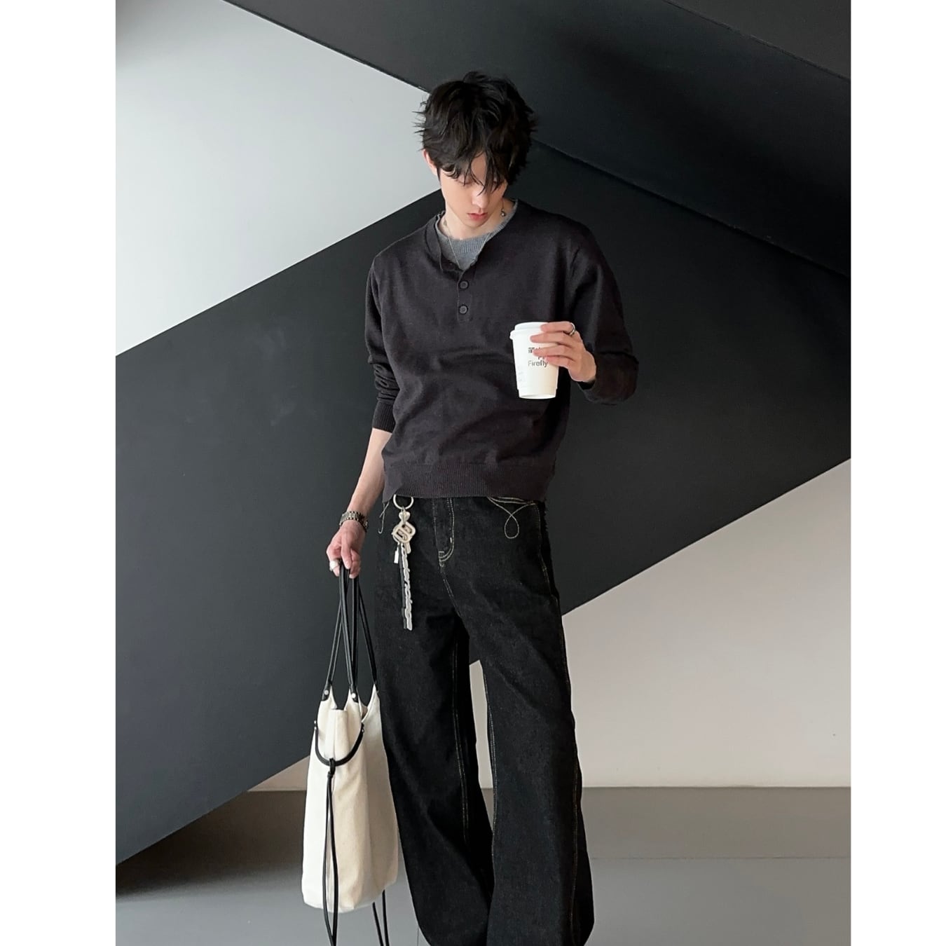 クルーネック×ヘンリーボタンの組み合わせが絶妙なバランスで、大人の抜け感を演出します。