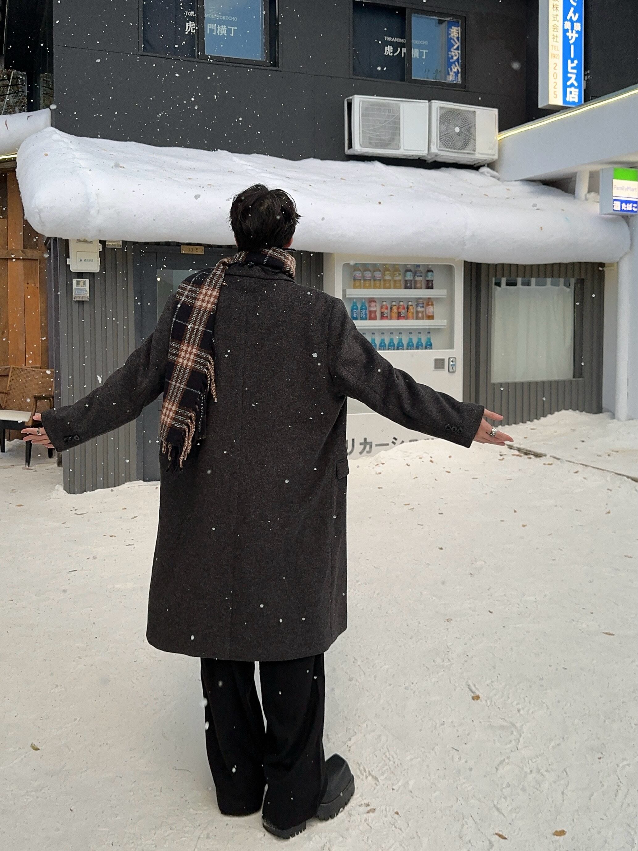 一枚あるだけで、冬の街に溶け込むような大人の雰囲気を演出します。