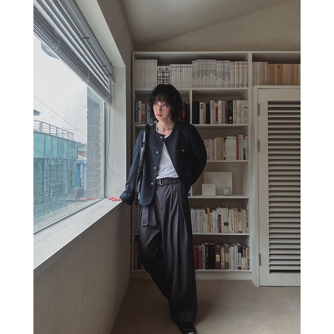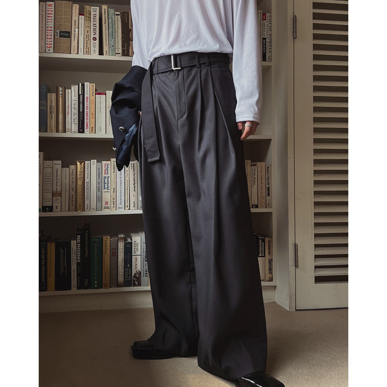 Tシャツ・シャツ・ニットなど幅広いトップスと好相性で、韓国系ストリートからきれいめまで自在に対応。