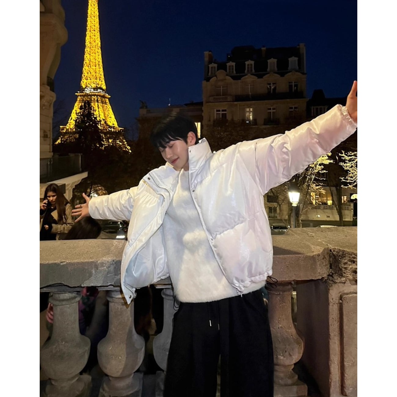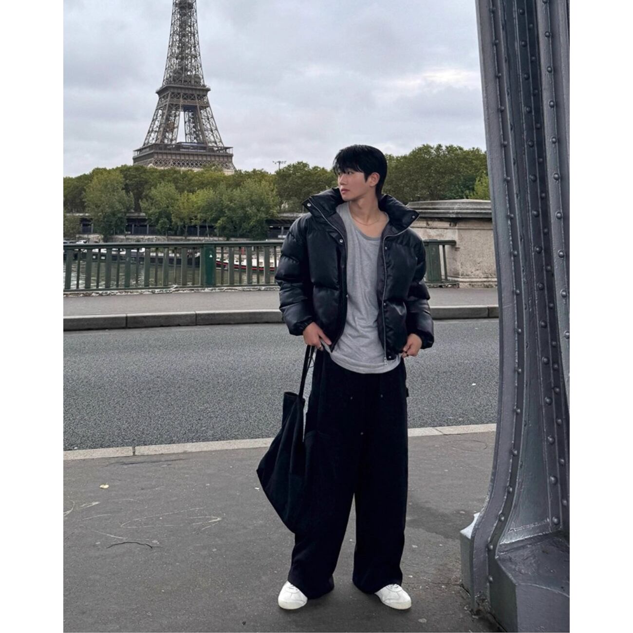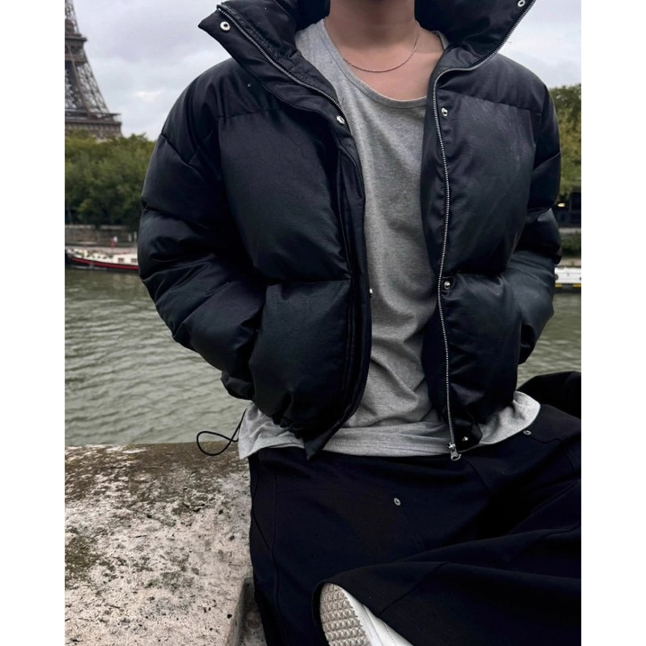 中綿入りのボリューム感あるシルエットながら、着丈は短めに設計されているため重たく見えず、バランスの取りやすさがポイント。
