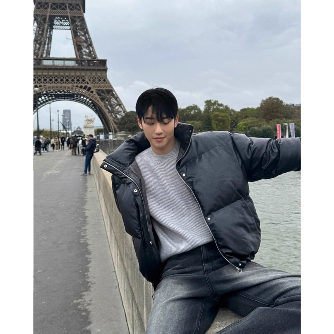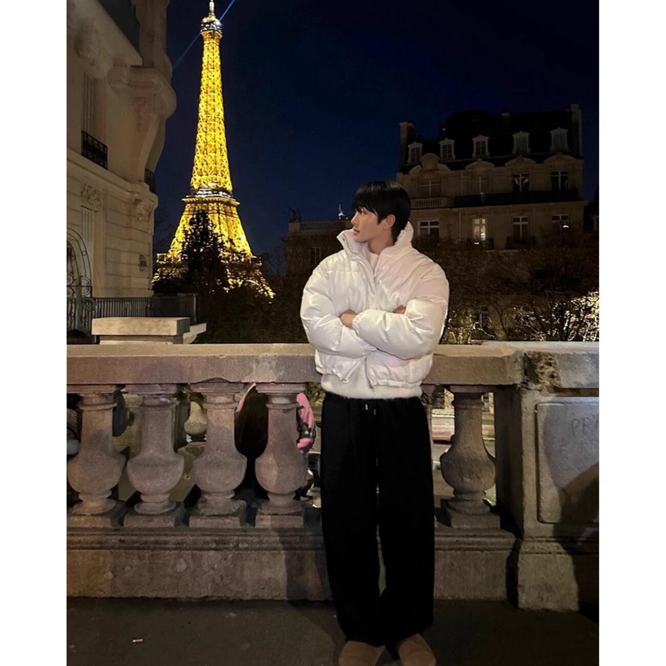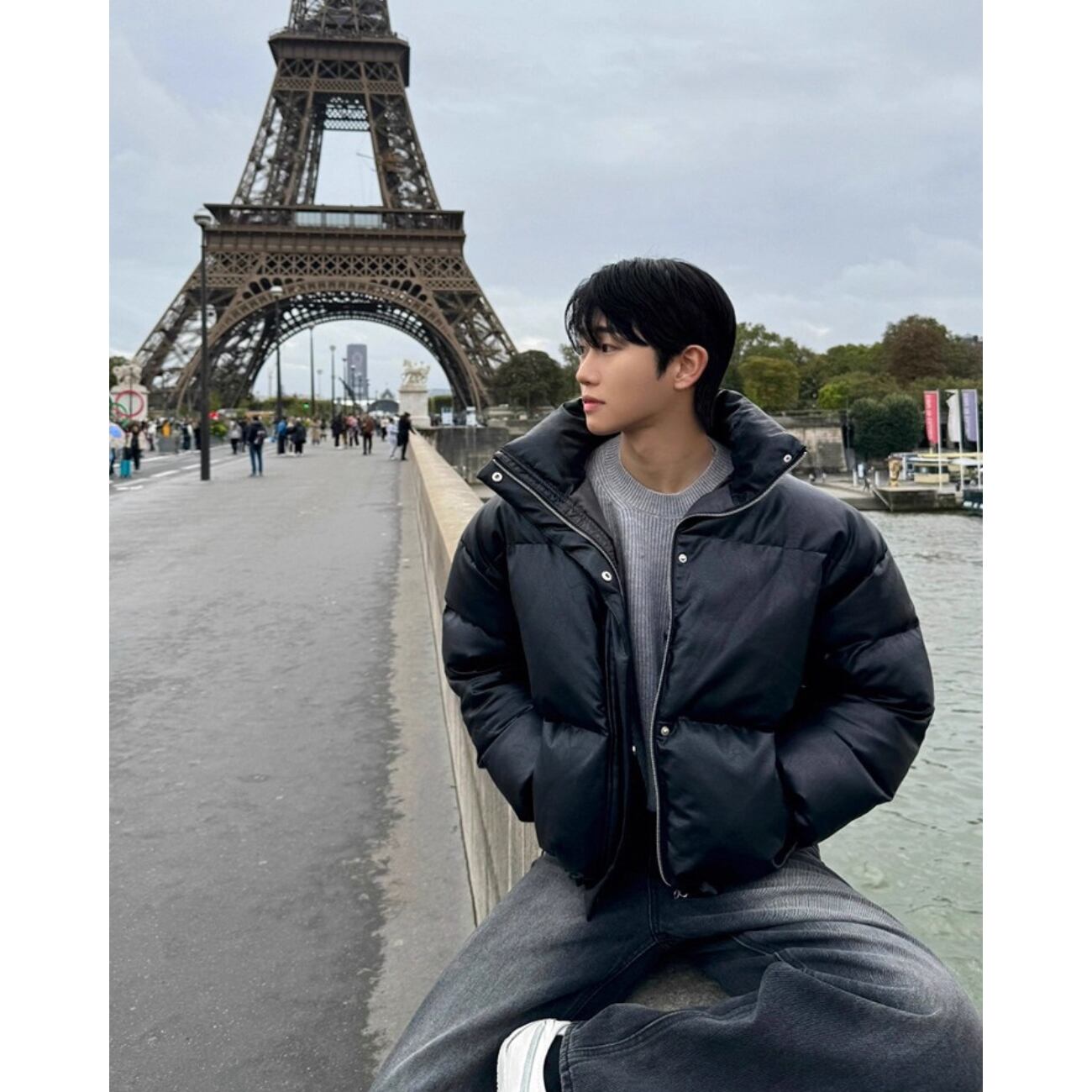 中綿入りのボリューム感あるシルエットながら、着丈は短めに設計されているため重たく見えず、バランスの取りやすさがポイント。
