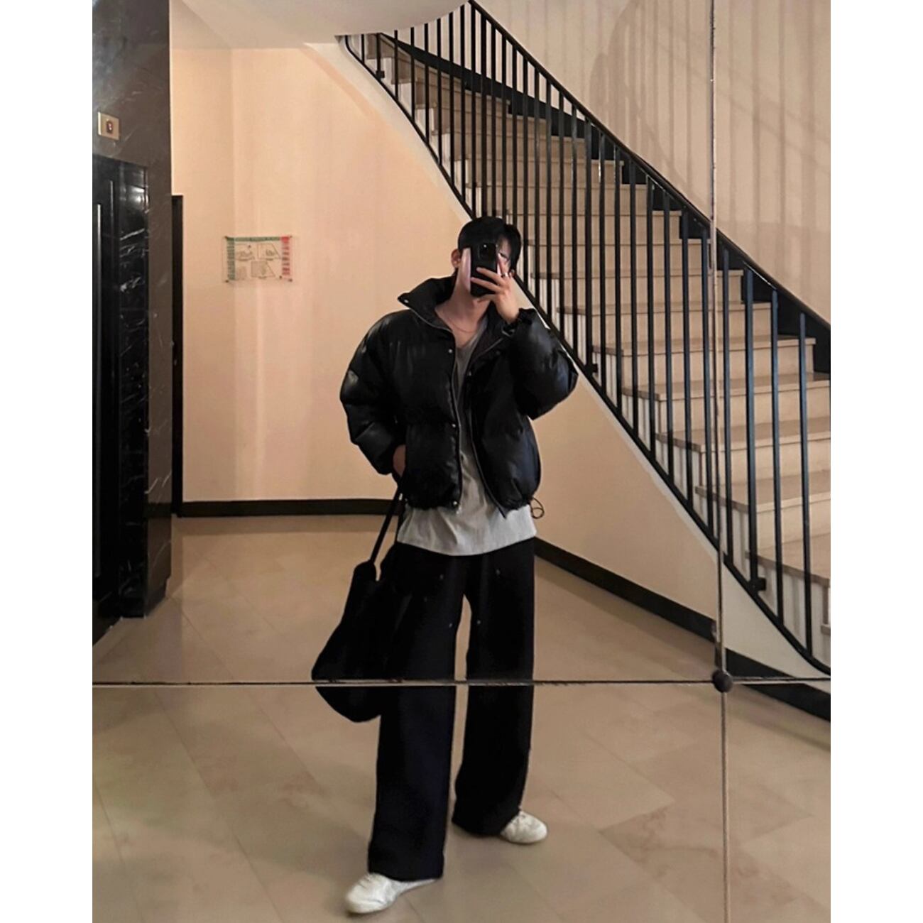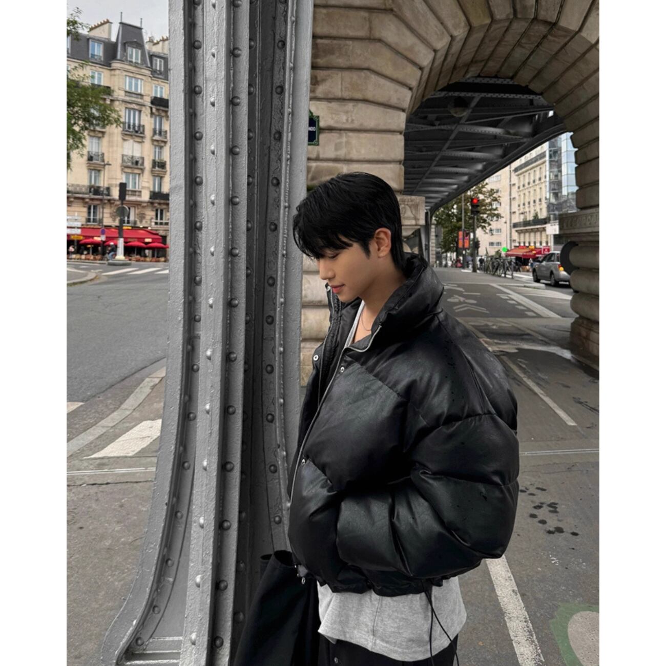 フェイクレザー パデッドジャケット|Faux Leather Padded Jacket 【K100】