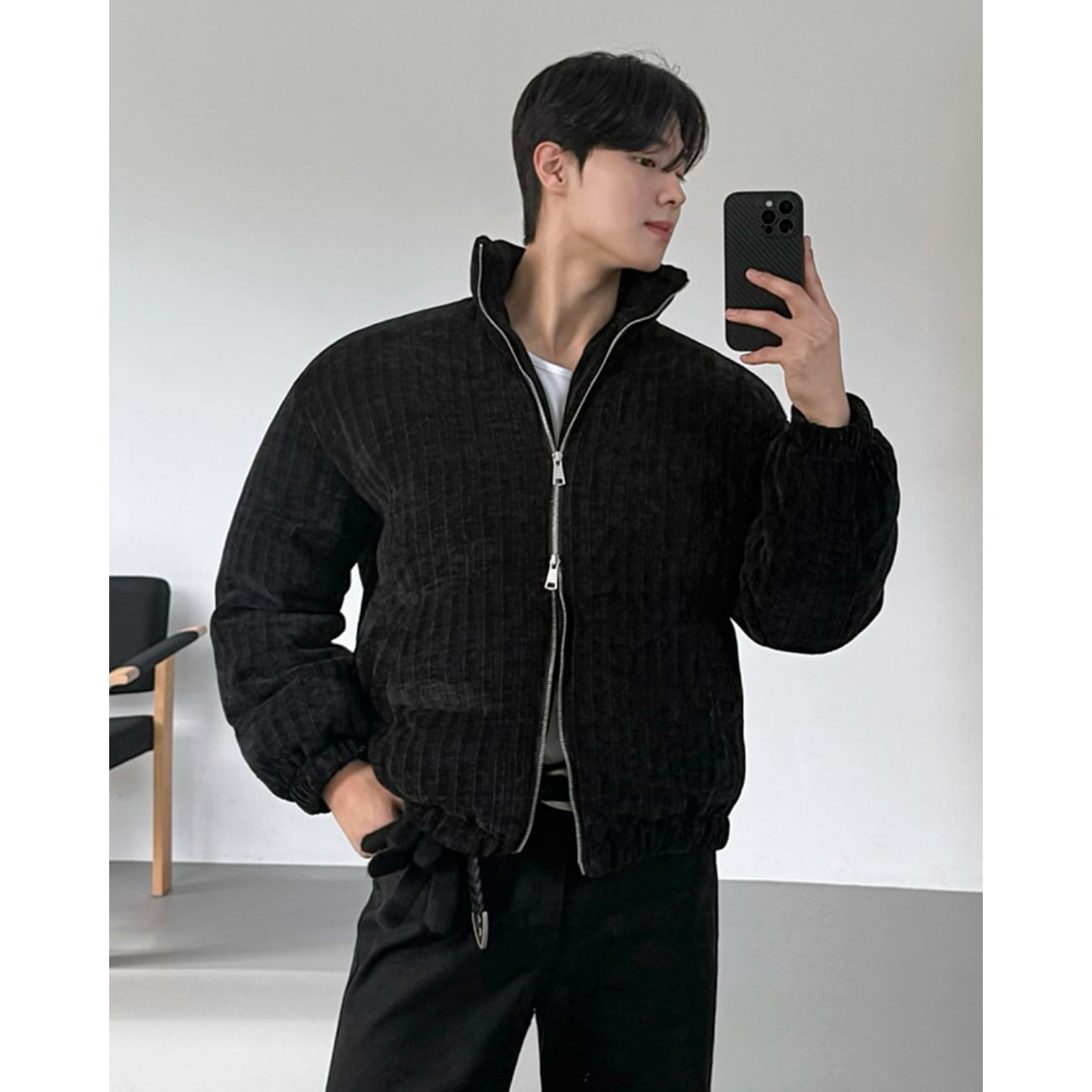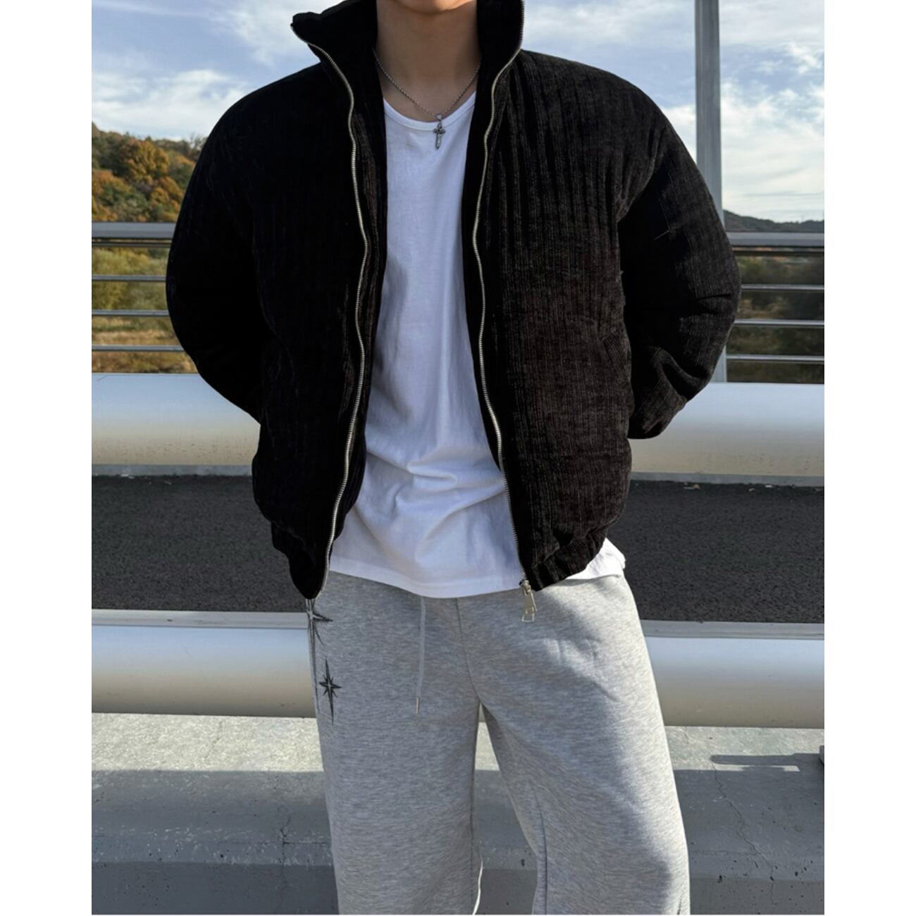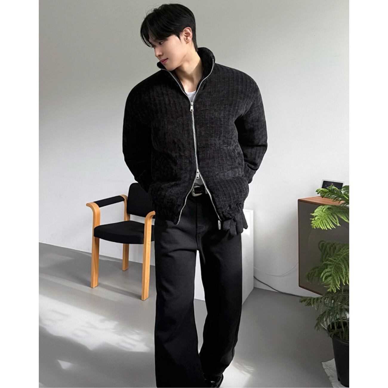 畝のあるコーデュロイ素材を使用した、ダブルジップ仕様のブルゾン。
