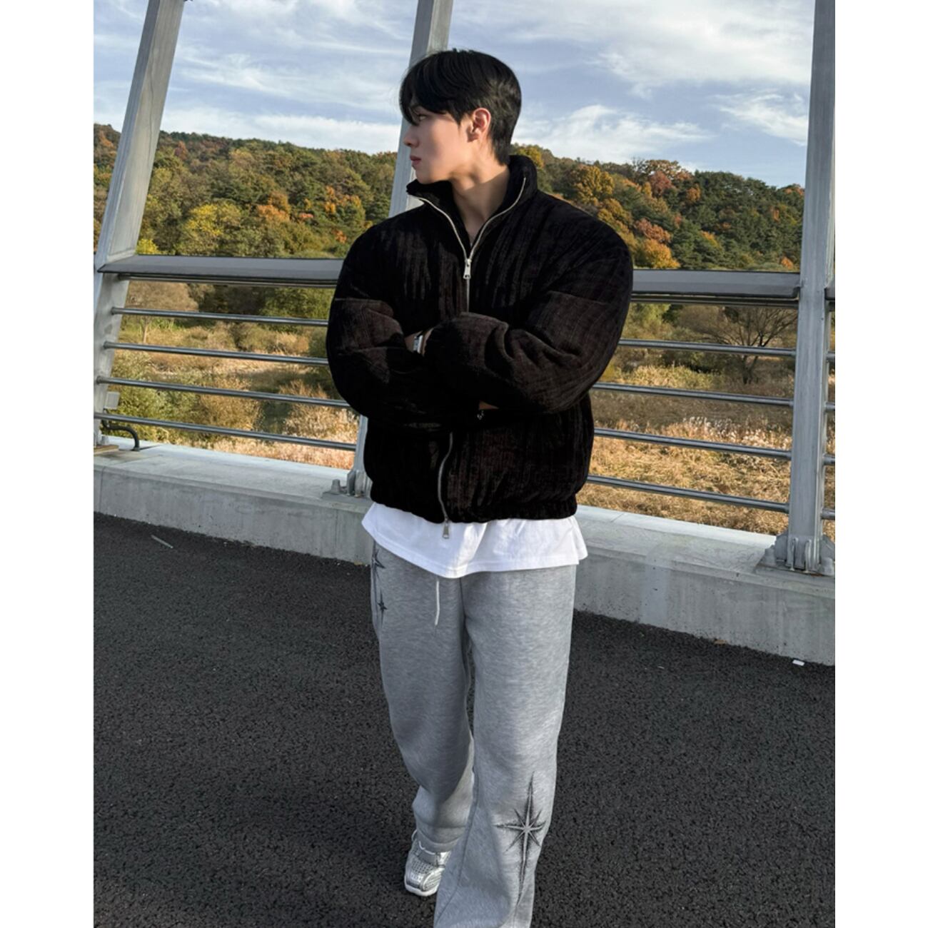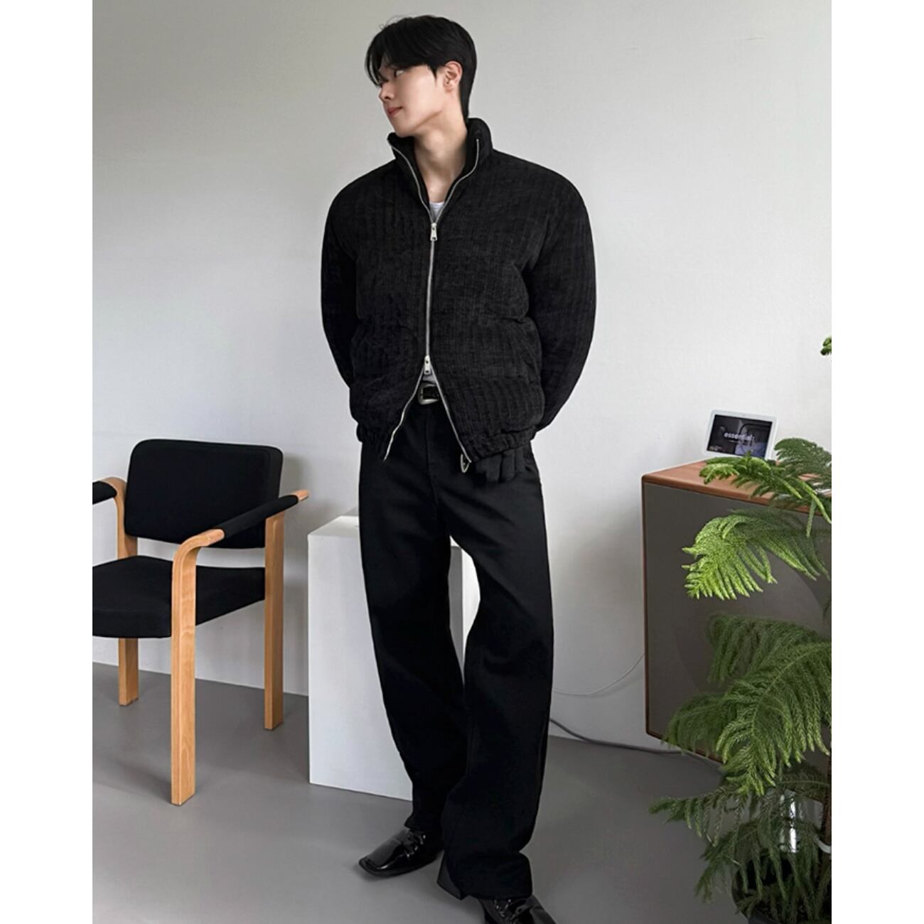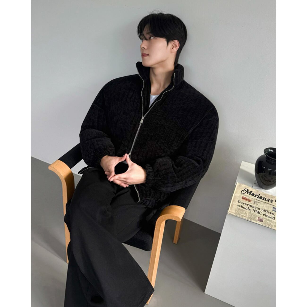 畝のあるコーデュロイ素材を使用した、ダブルジップ仕様のブルゾン。