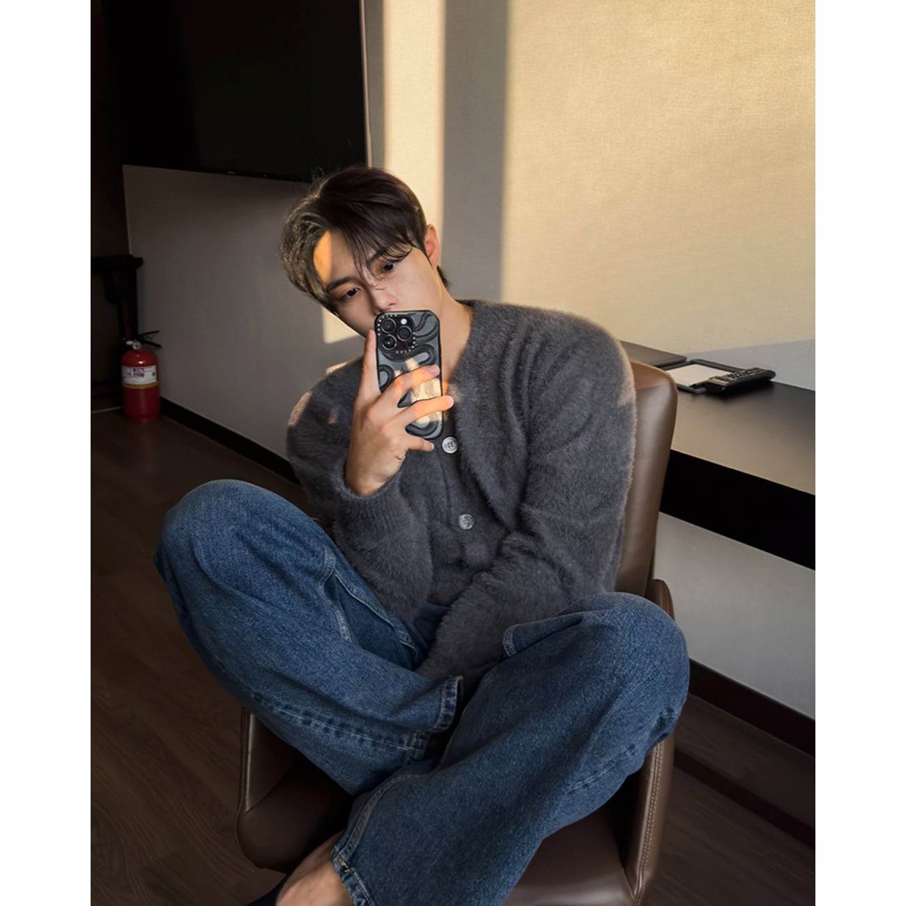 フェザーVネックカーディガン|Feather V-Neck Cardigan 【k106】