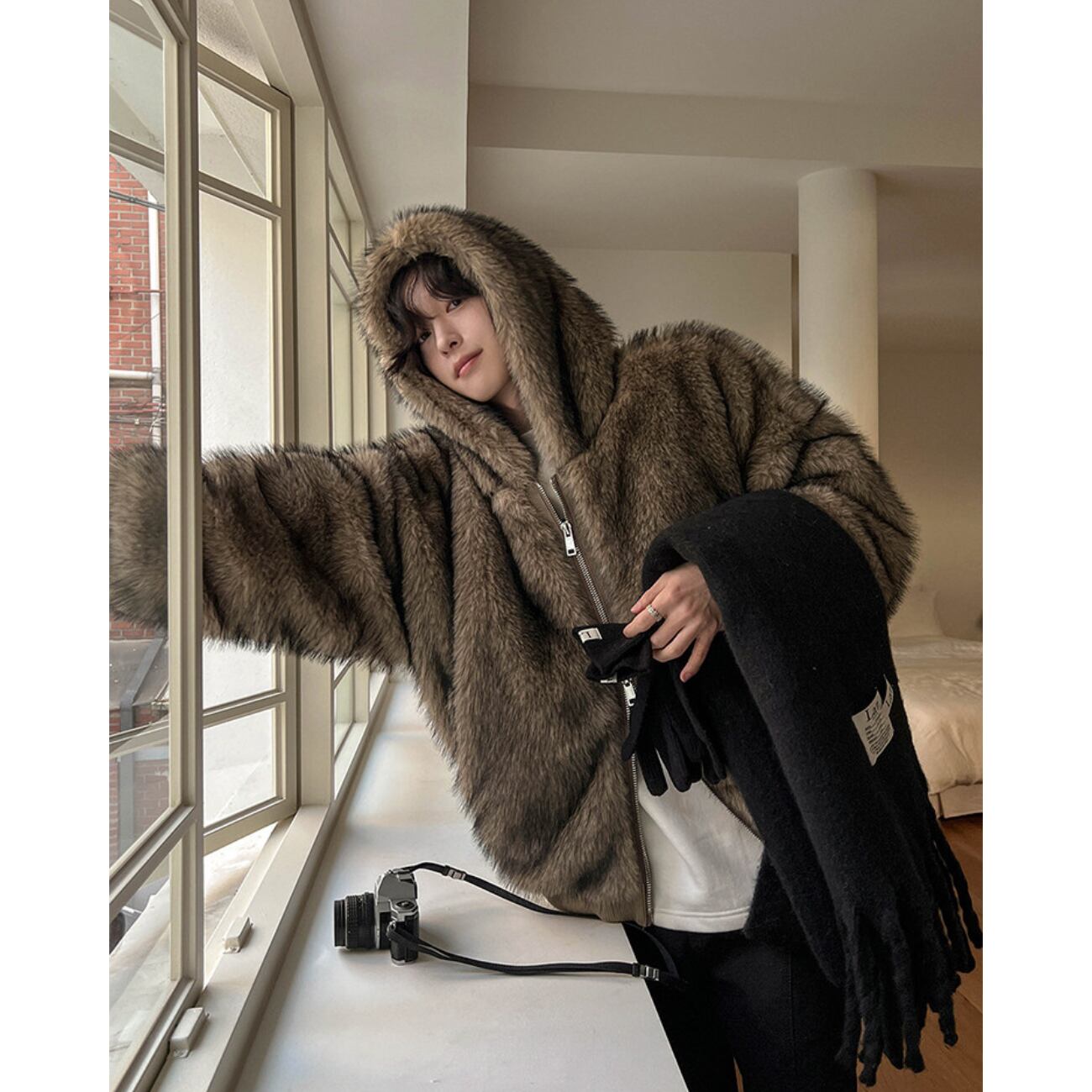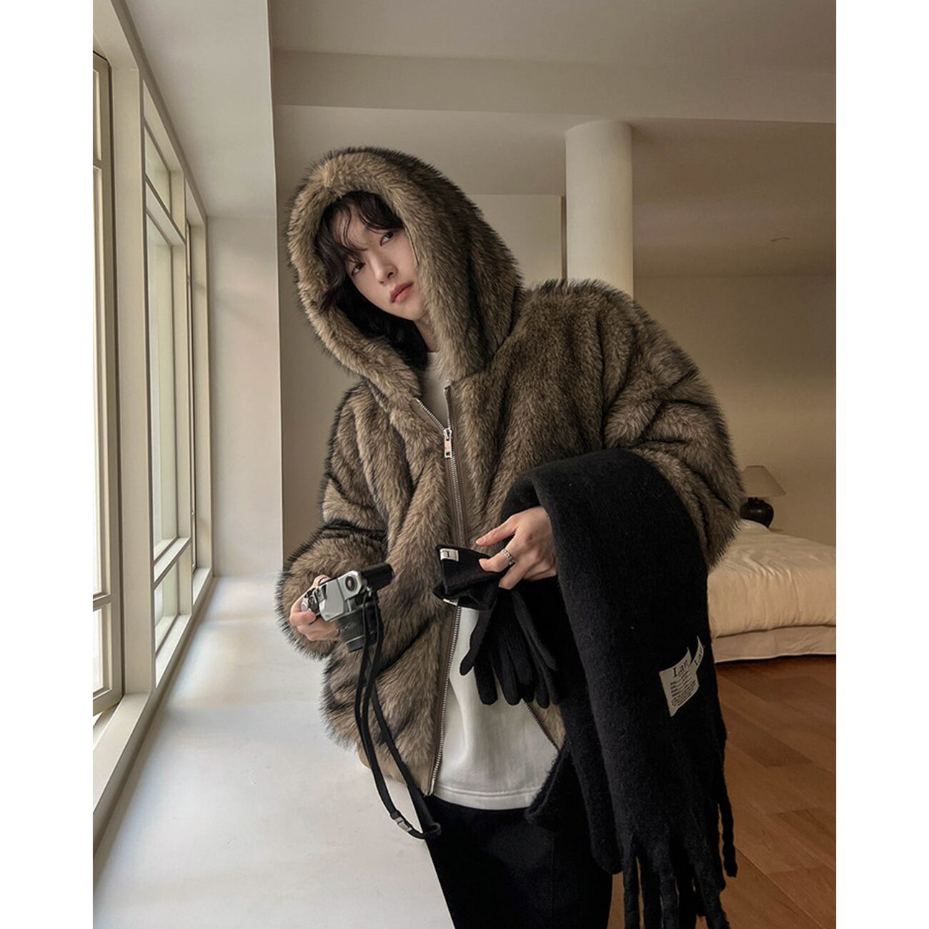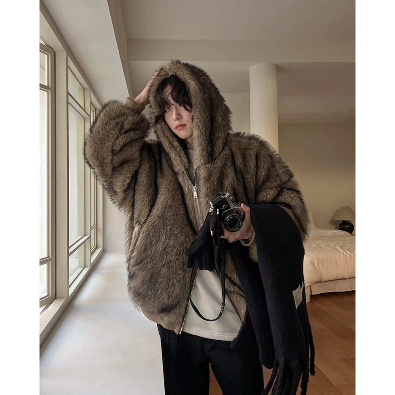 見た目にも暖かく、冬のコーディネートに自然なボリューム感をプラスします。