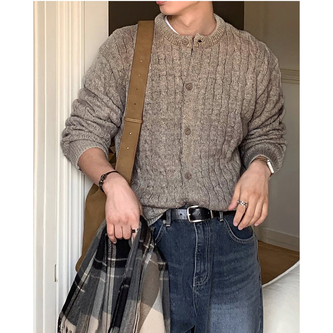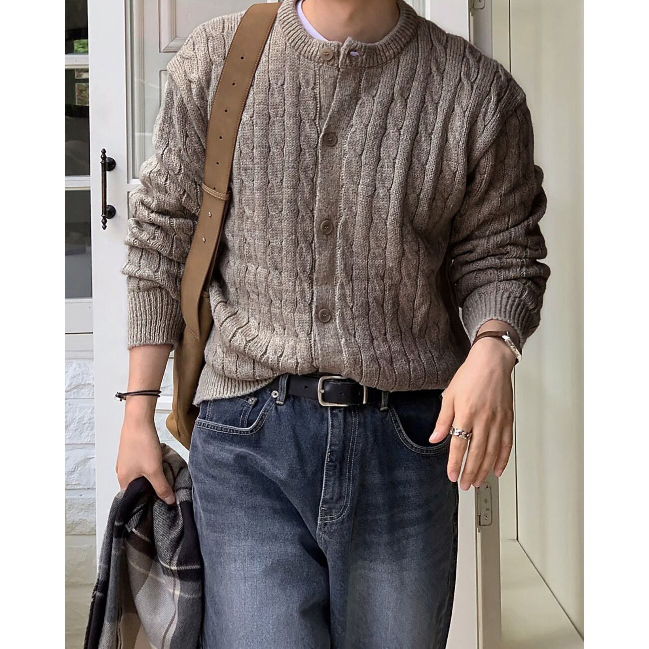 一枚で着ても雰囲気が出る、デイリーに活躍するケーブルニットカーディガンです。