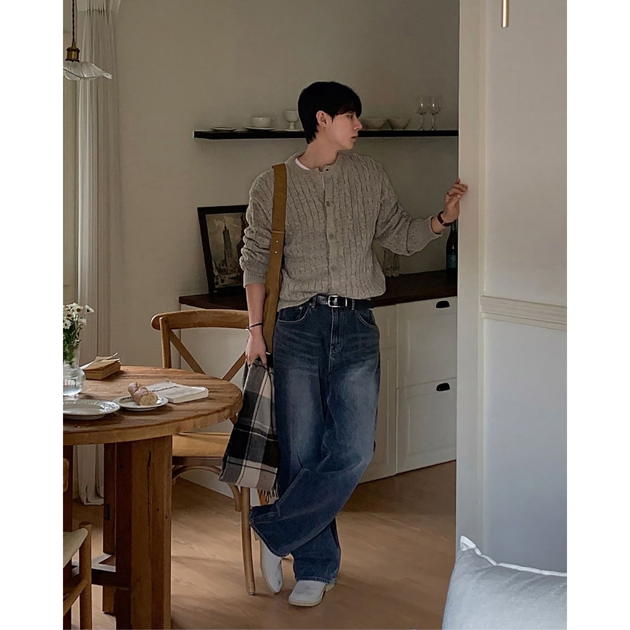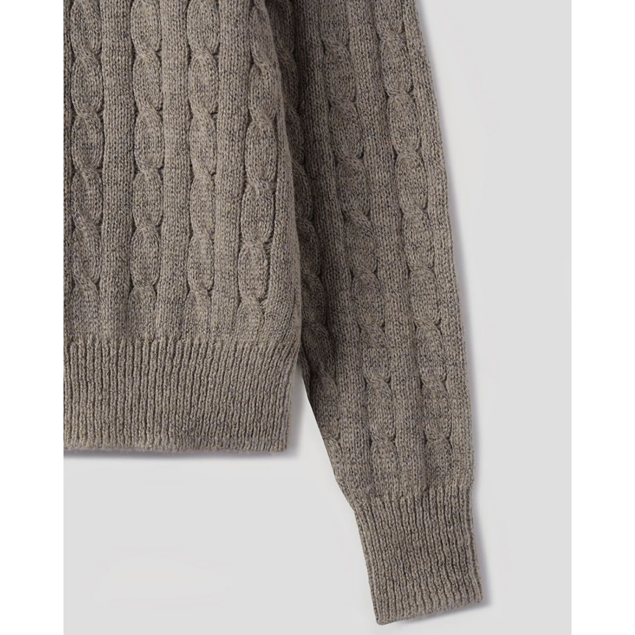 クラシックな編み柄をベースにしながら、すっきりとした首元と程よいゆとりのあるシルエットで、今のスタイルに馴染むバランスに仕上げています。
