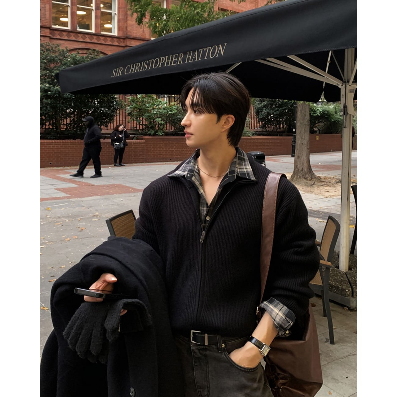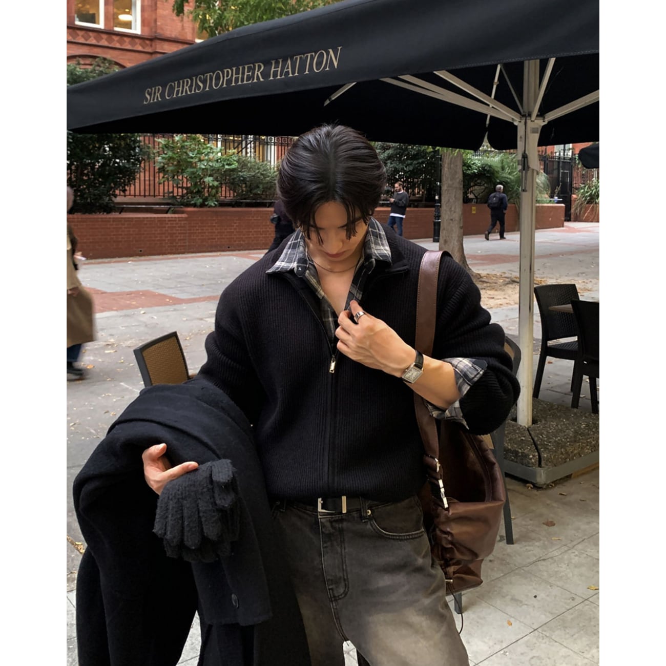 細畝のリブ編みが印象的な、ジップ仕様のニットトップス。