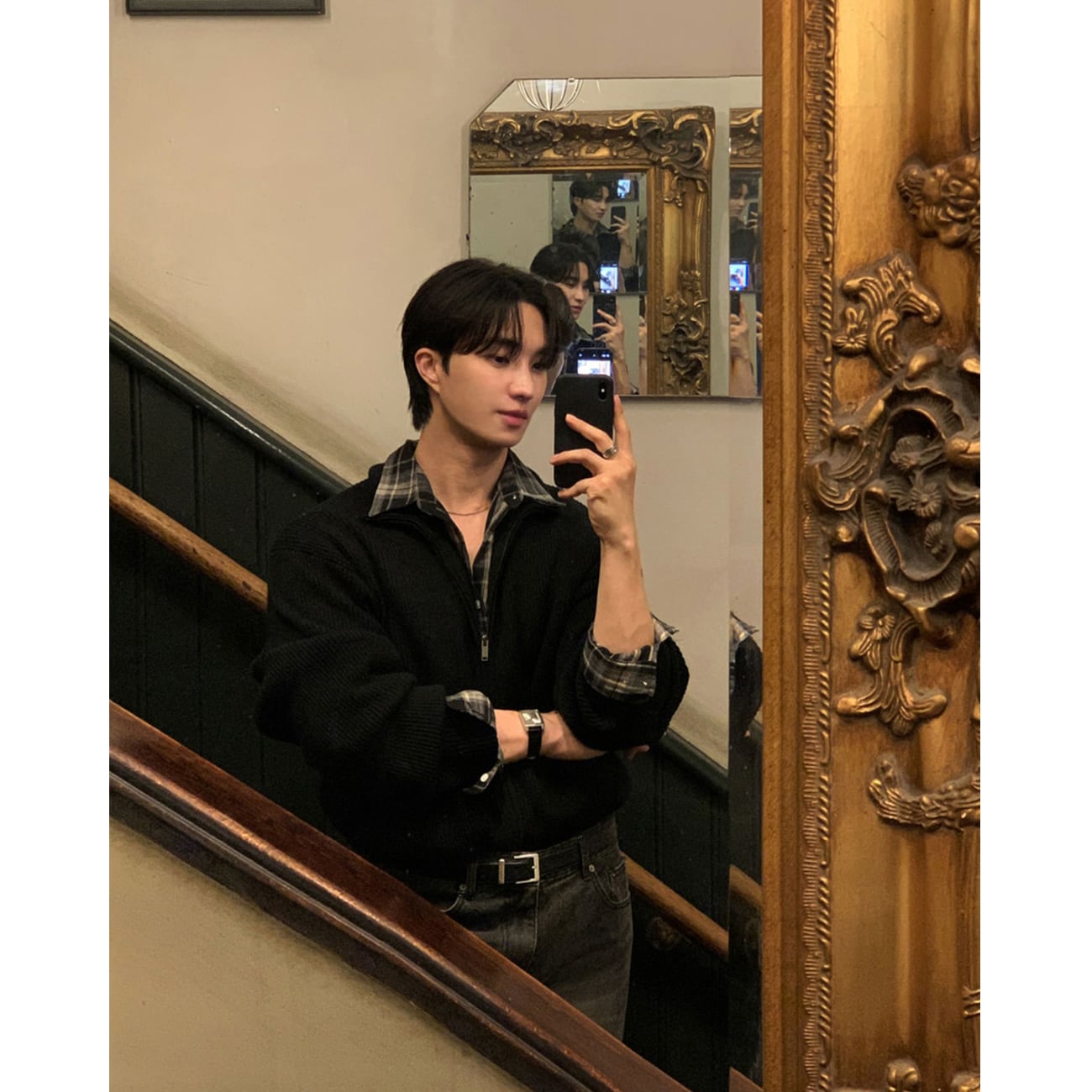 ■ モデルインナー着用:ナチュラルチェックシャツ|Natural Check Shirt K142