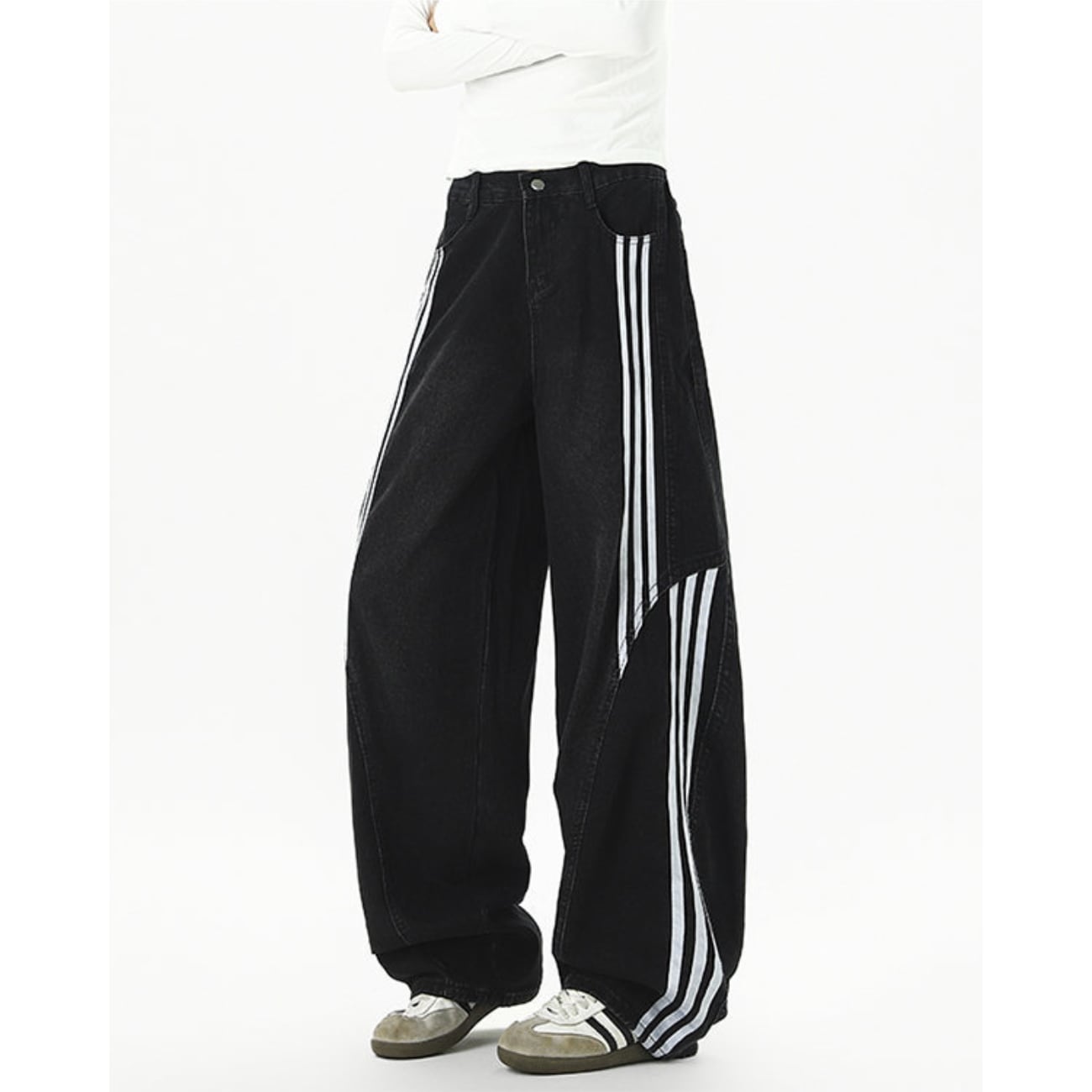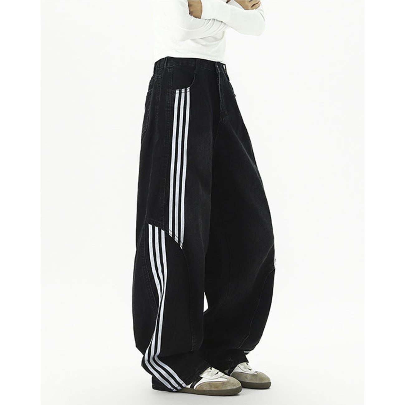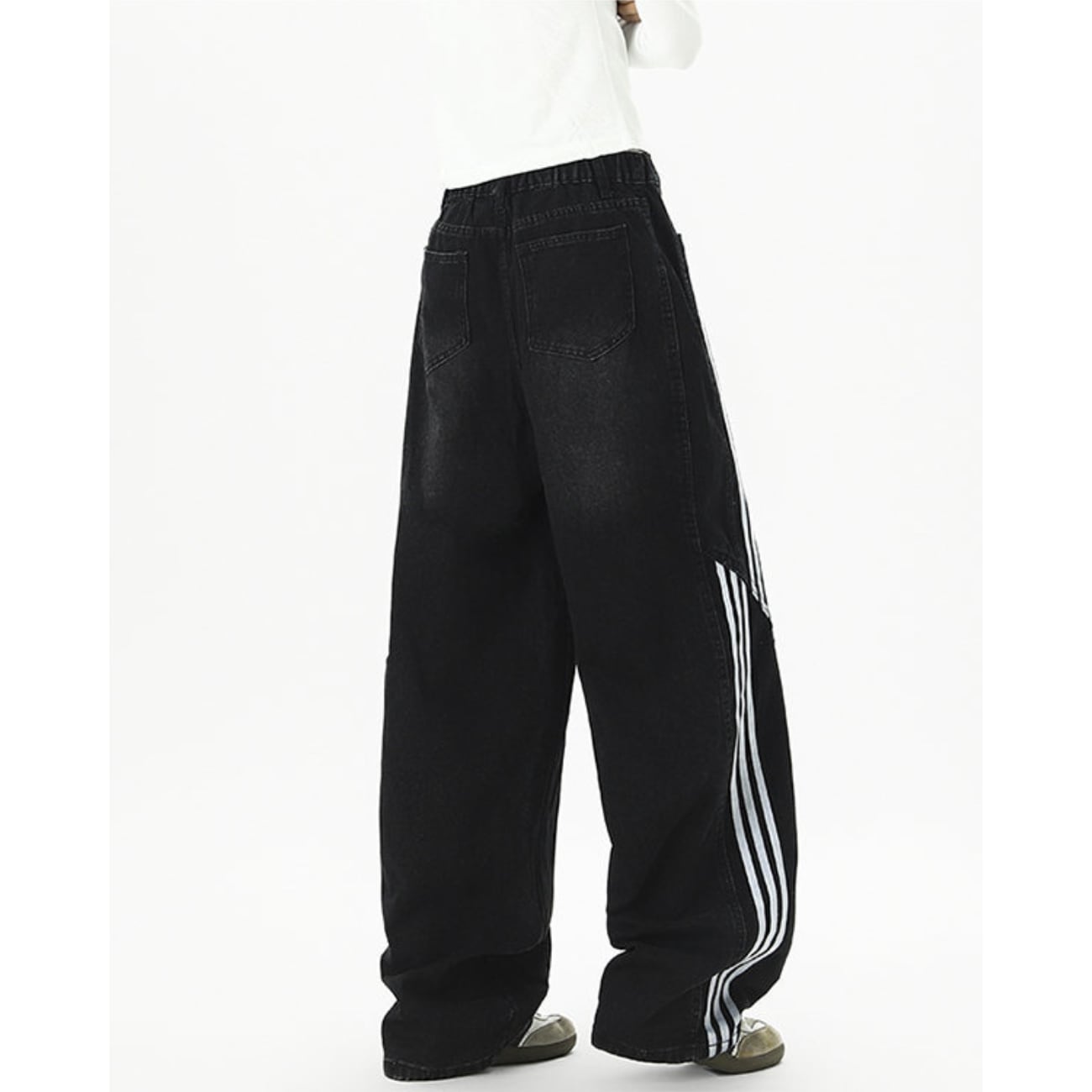 ワイドシルエットのデニムパンツ。