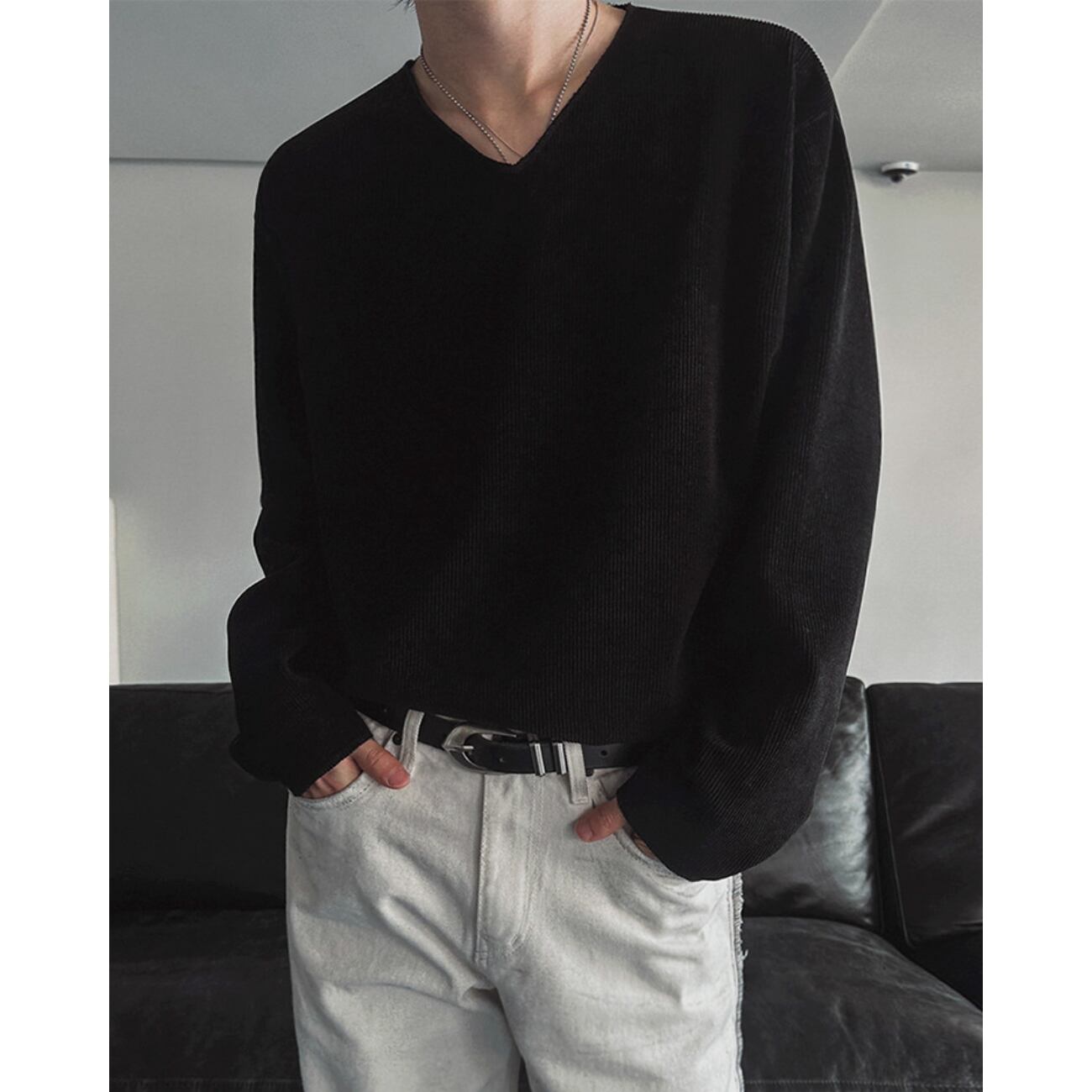 リブテクスチャ Vネックロング|TRib Texture V-Neck Long Tee 【k140】