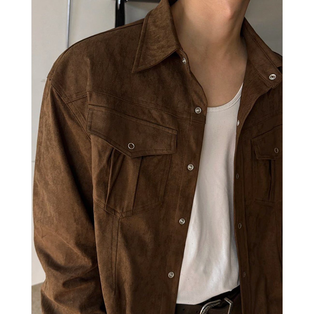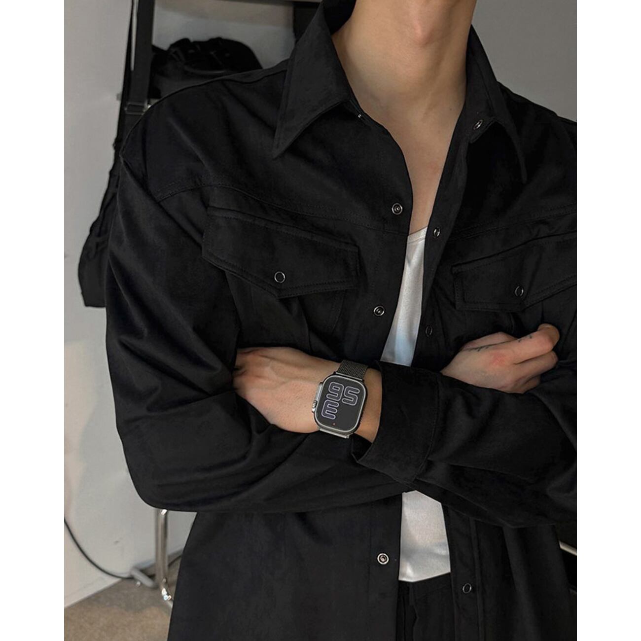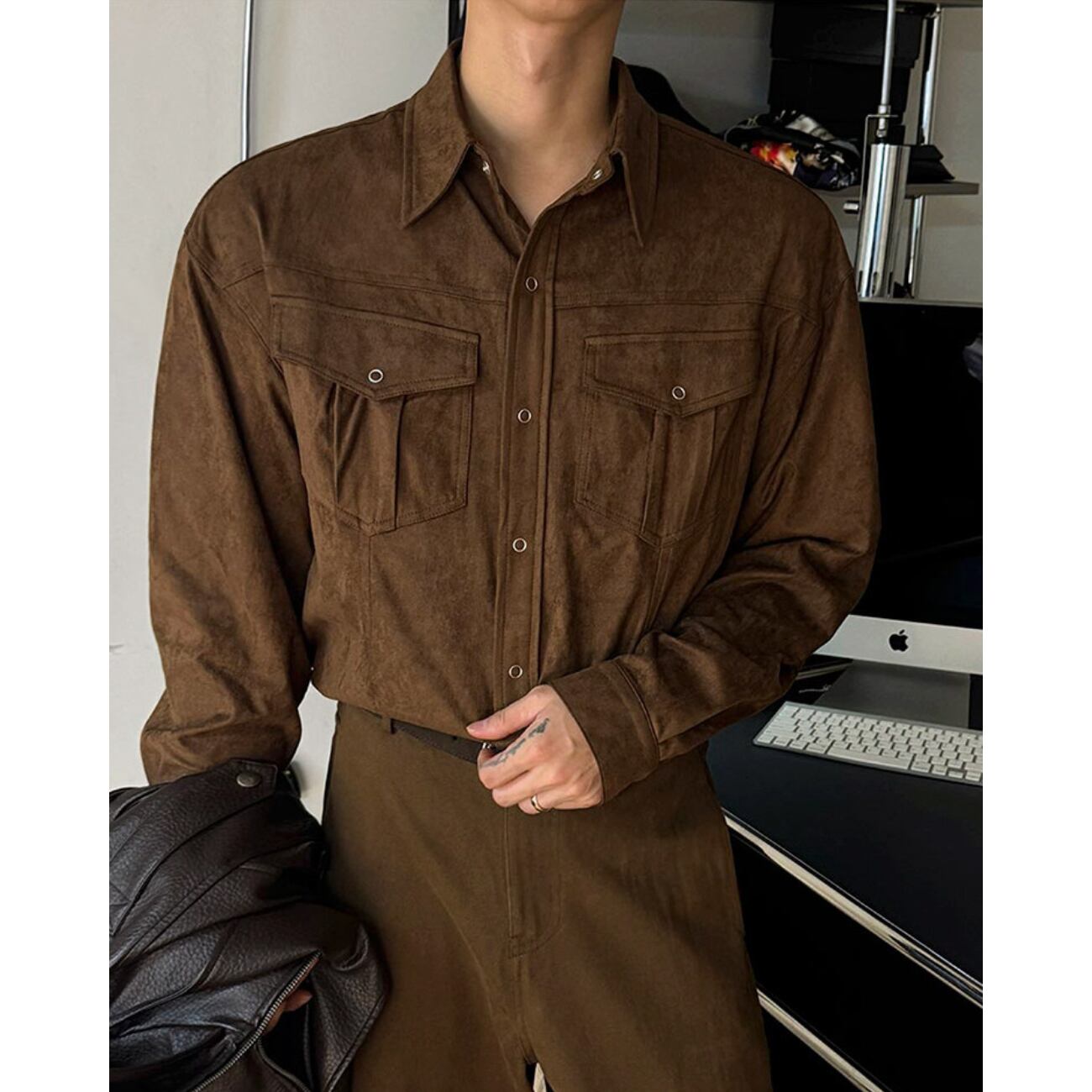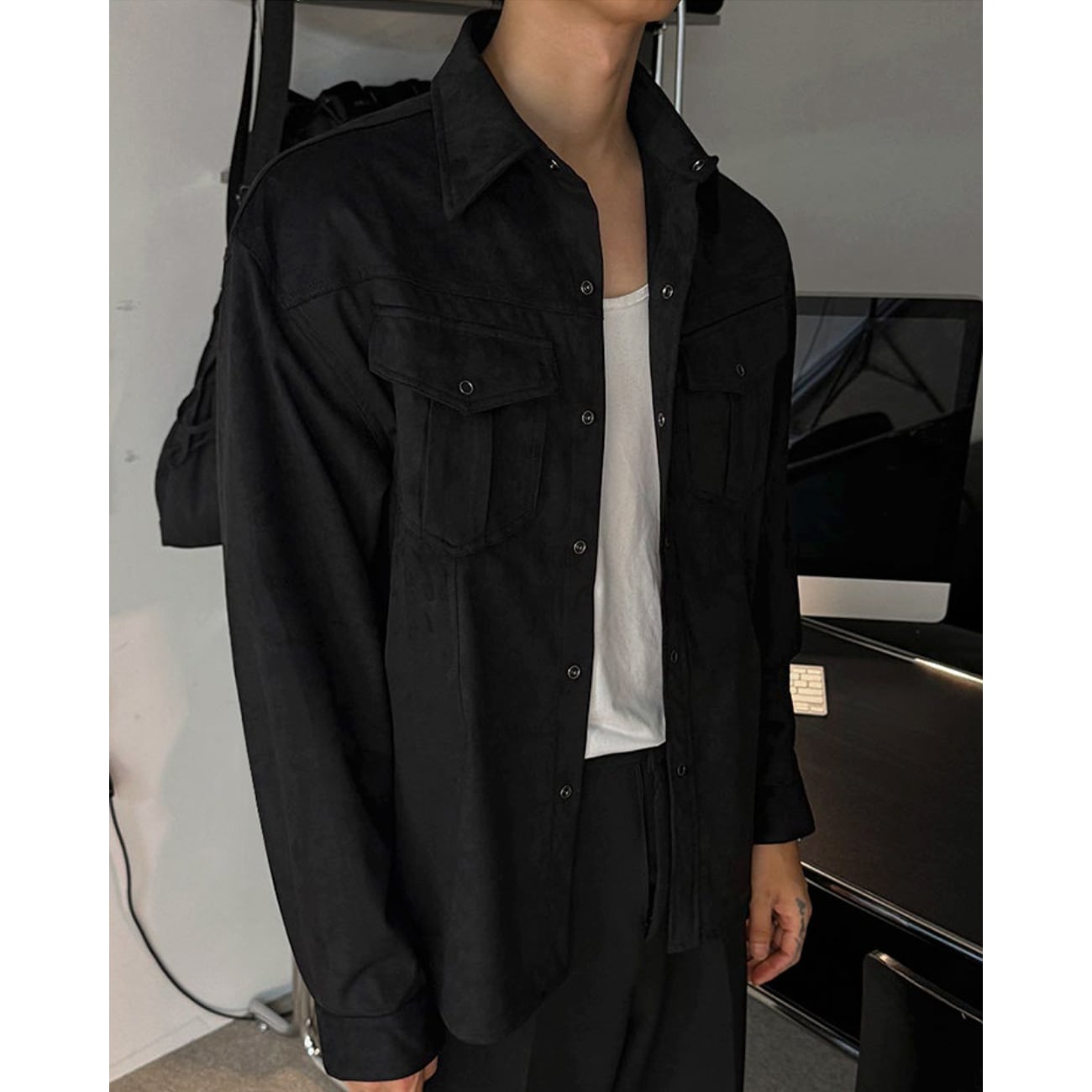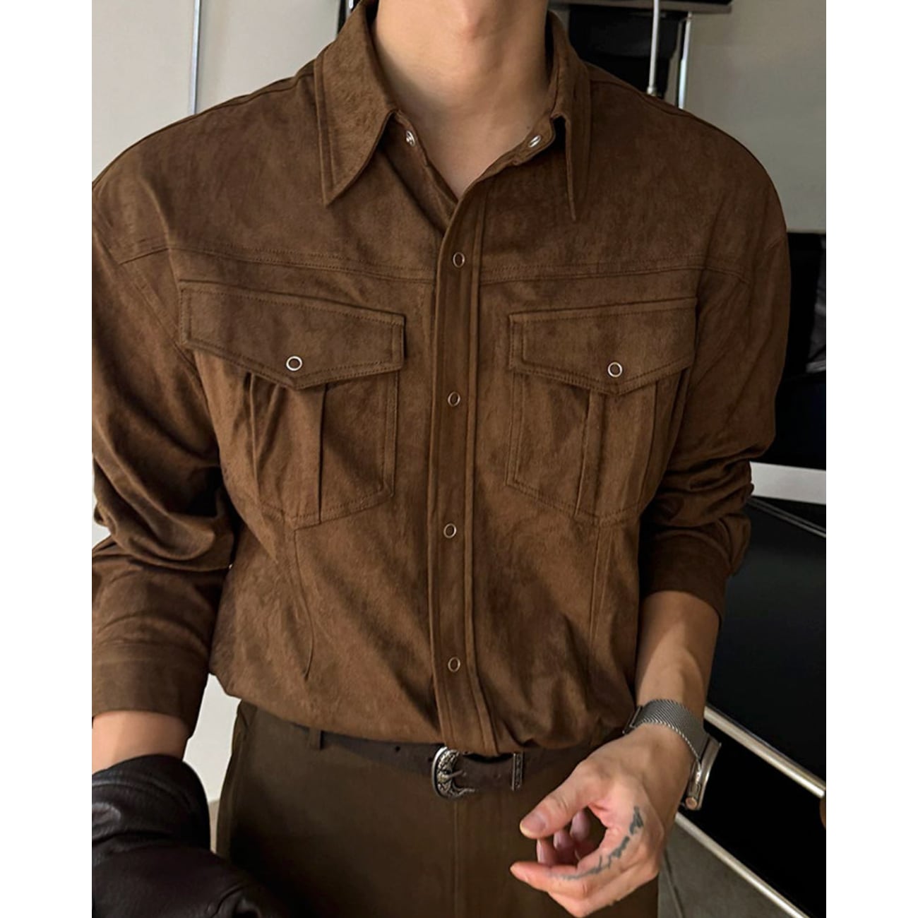 立体感のあるテクスチャー素材が印象的なダブルポケットシャツ。