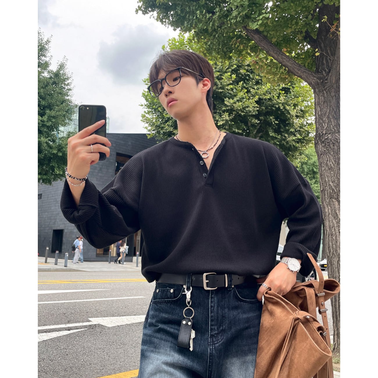 ベーシックヘンリーロングT|Basic Henley Long Tee k146