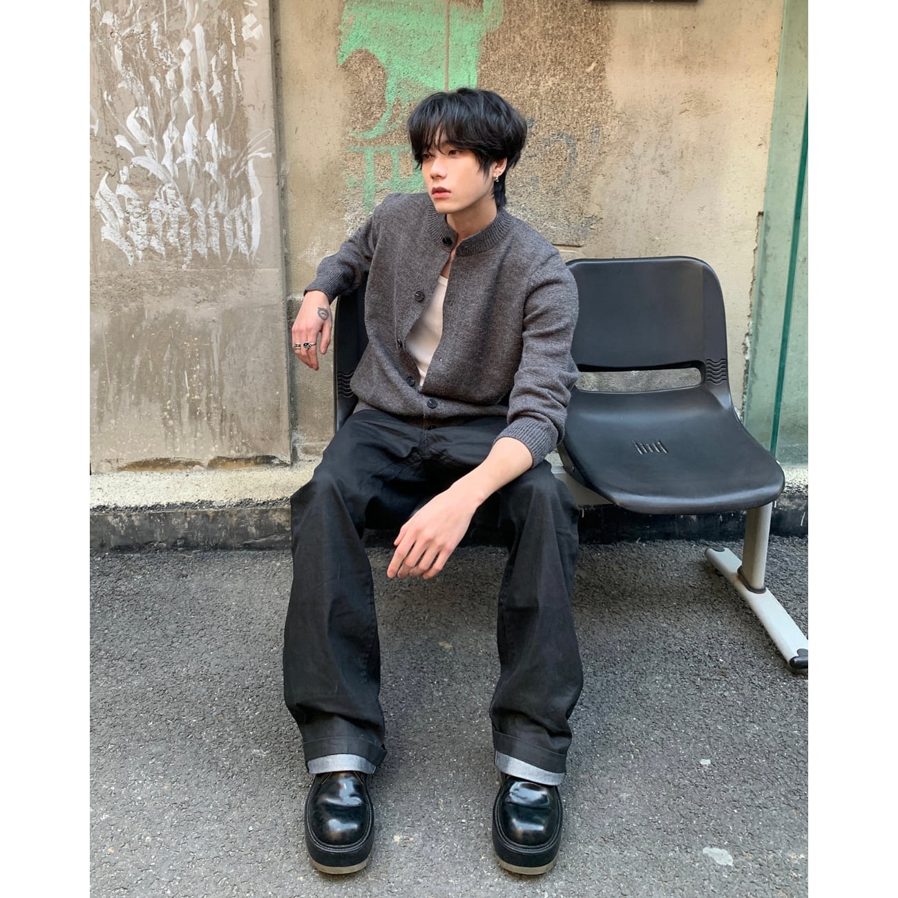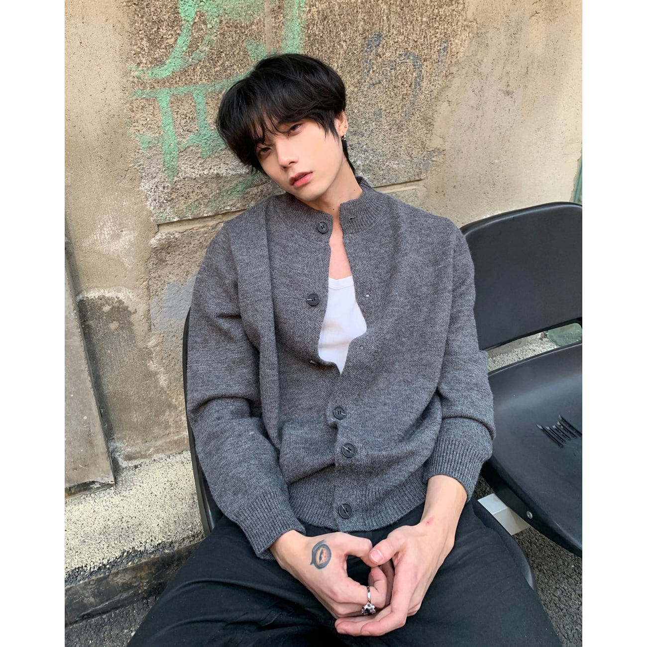 落ち着いたグレーカラーが、大人っぽく洗練された印象を作ってくれる一枚です。