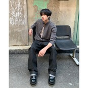 スラックスと合わせてきれいめにまとめるのもおすすめ。