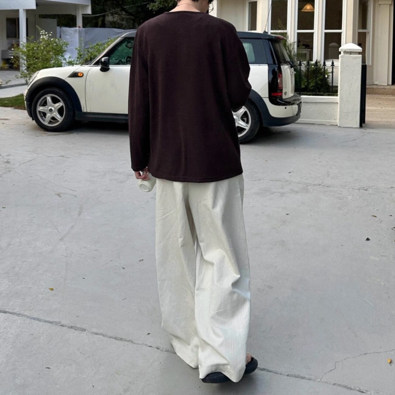 ミニマルな雰囲気ながら、普通のロンTとは少し違う存在感を演出してくれる一枚です。