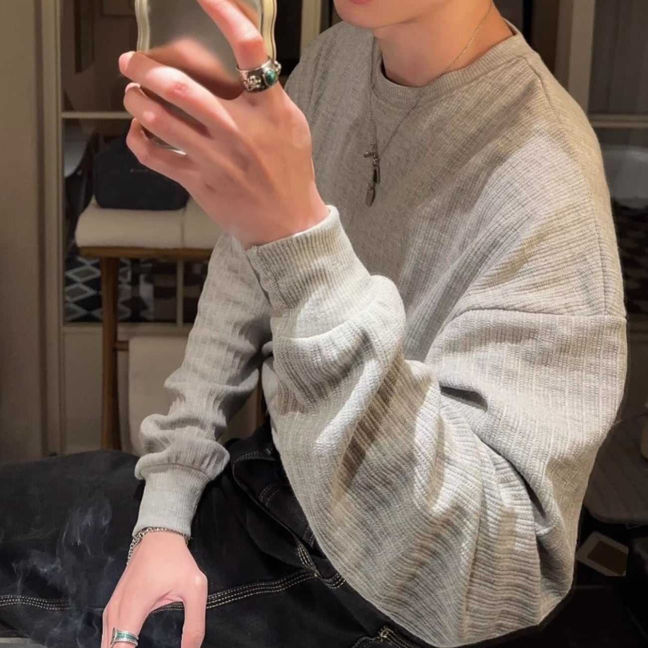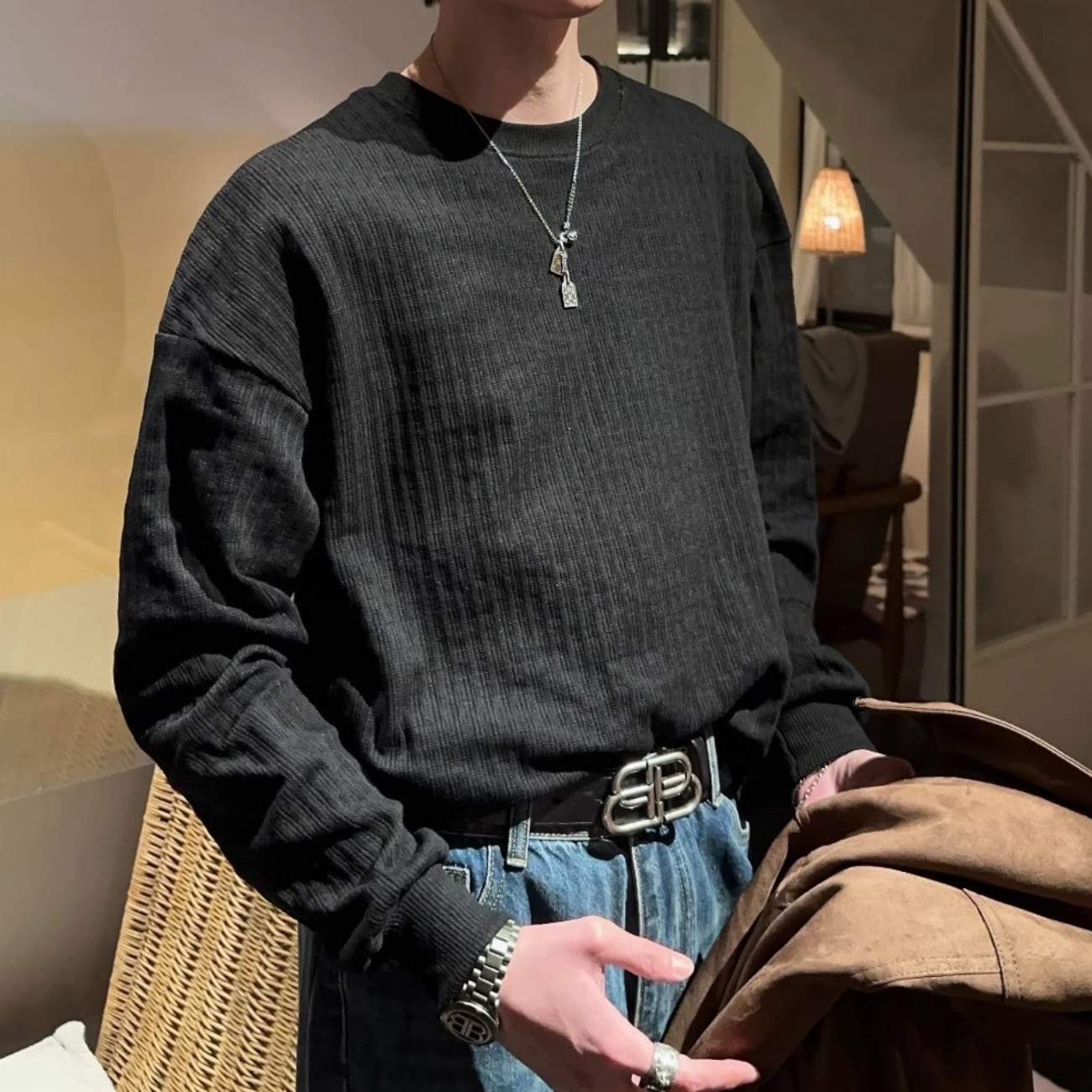 ミニマルなデザインながら、さりげない素材感がコーデに自然な雰囲気をプラスしてくれる一枚です。