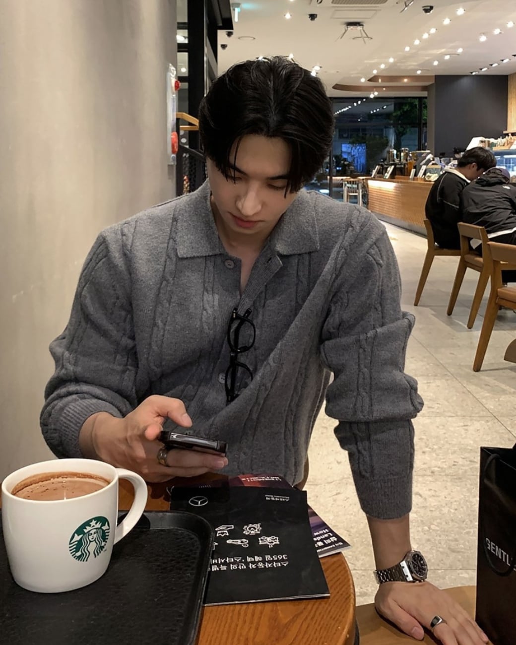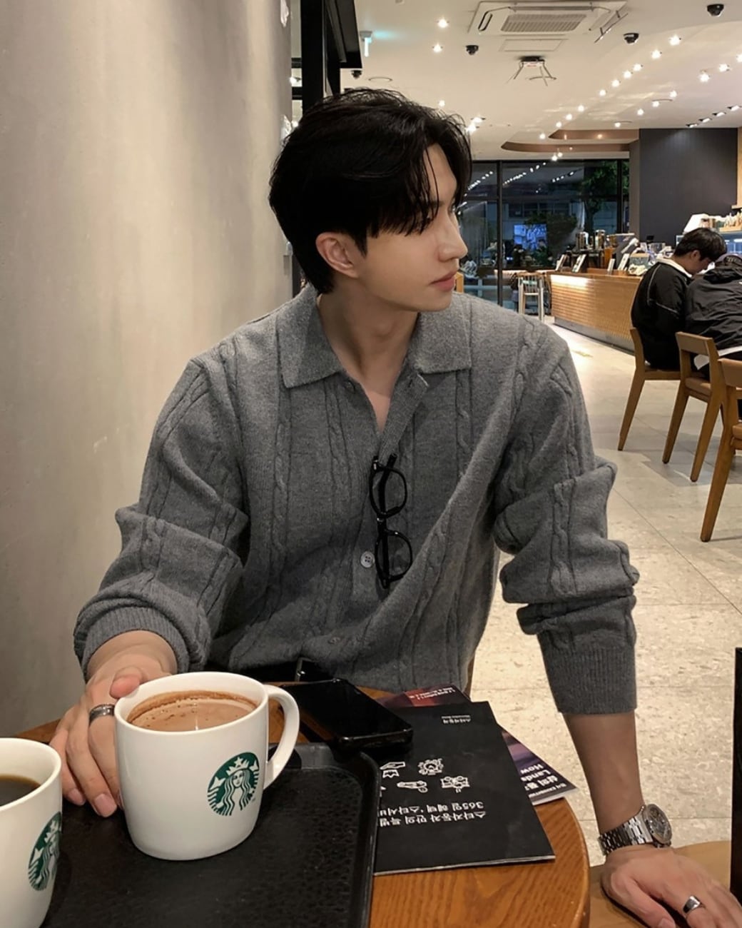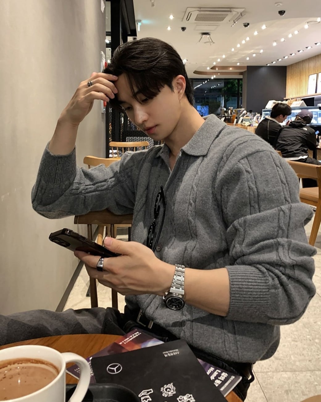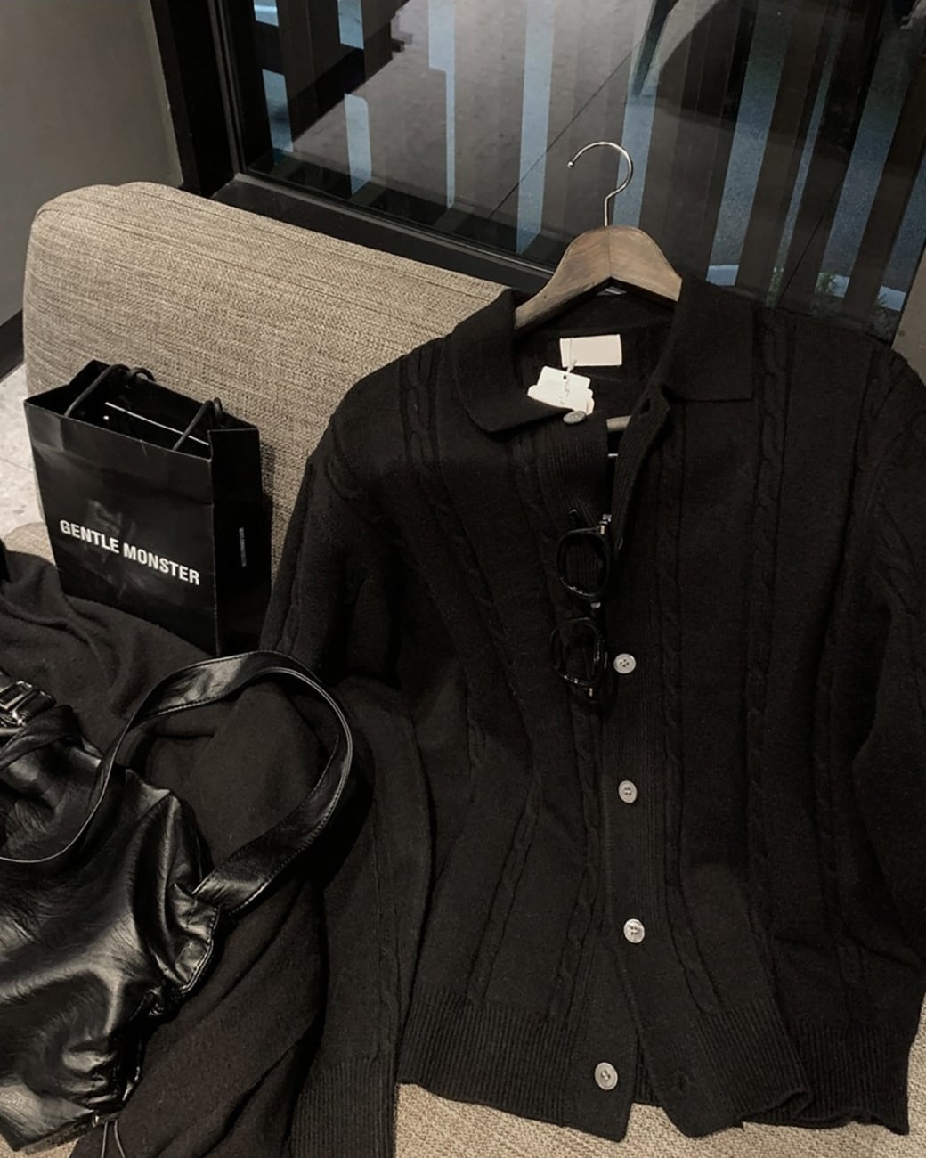 立体感のあるケーブル編みが特徴のニットカーディガン。