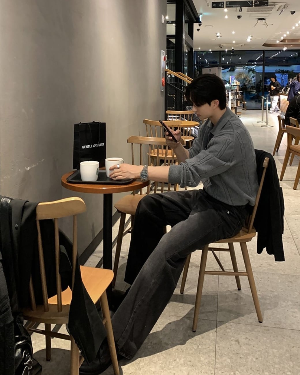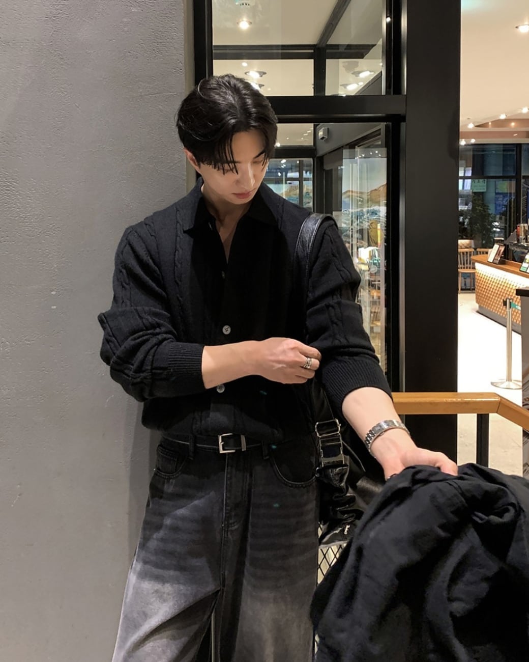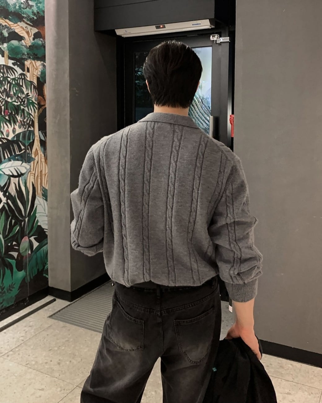 シンプルなデザインながら、編み柄の表情がコーディネートに自然なアクセントを加えてくれる一枚です。
