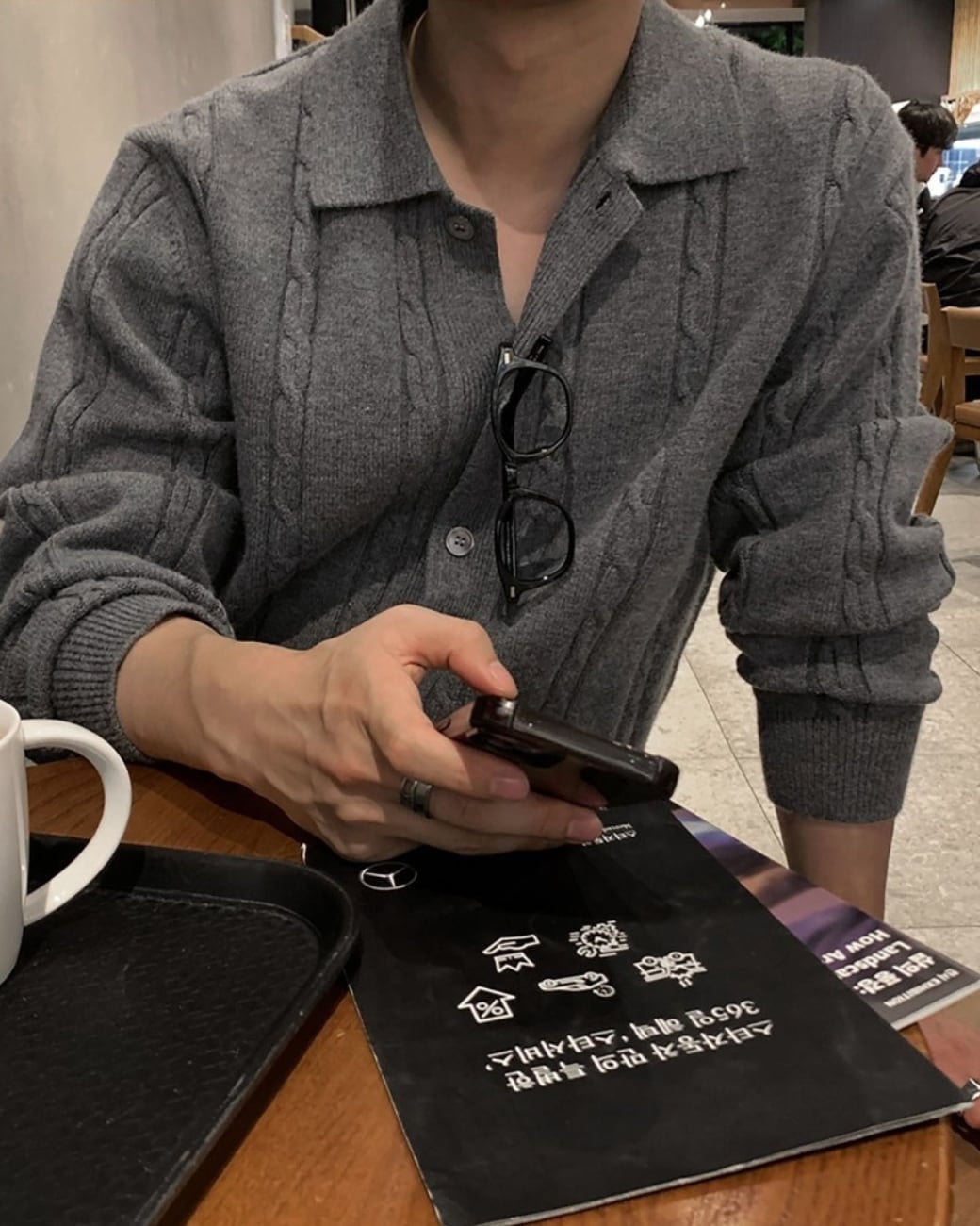 ケーブルポロニットカーディガン|Cable Polo Knit Cardigan 【k156】