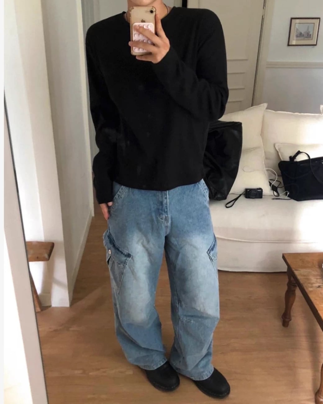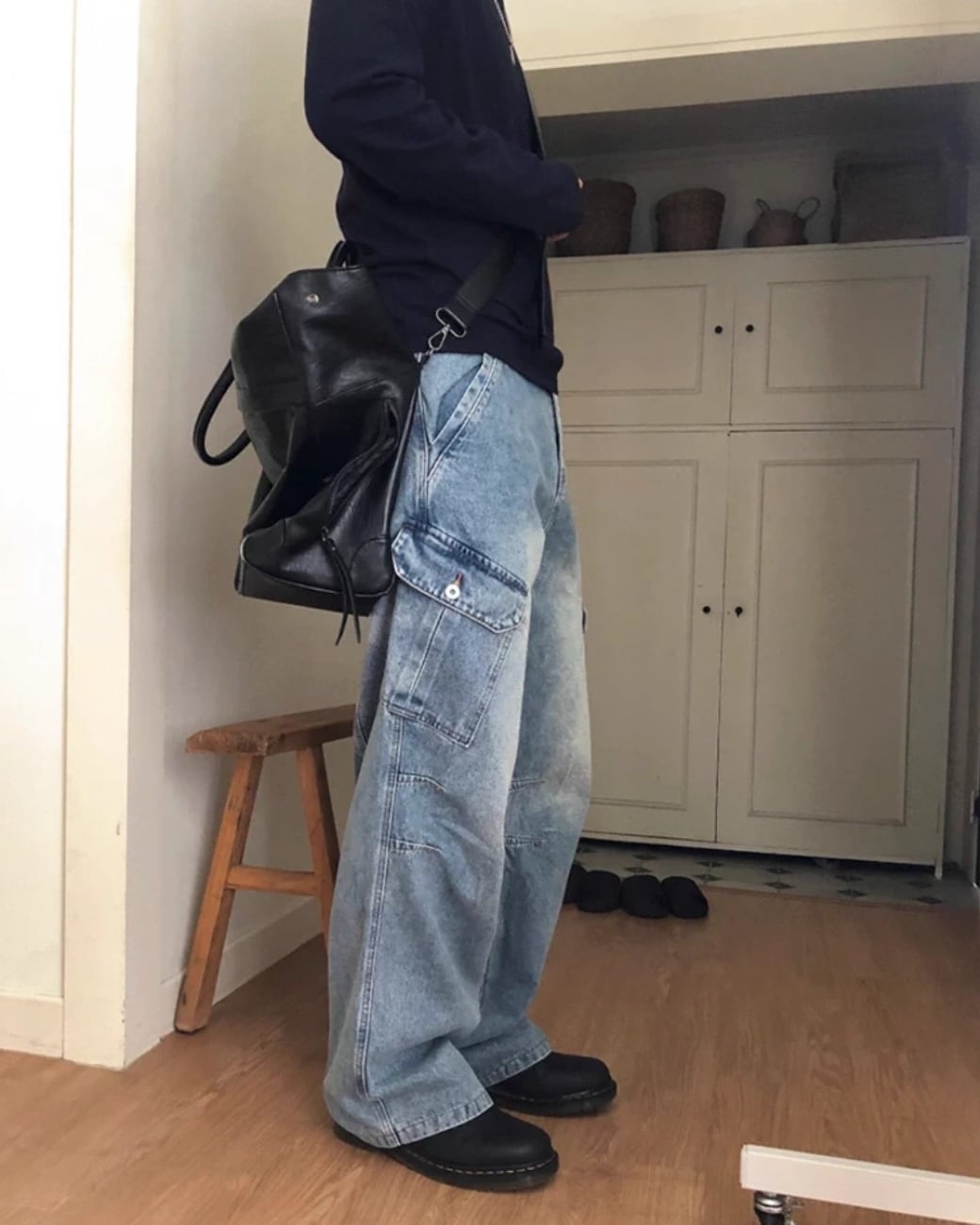 ワイドデニムカーゴパンツ|Wide Denim Cargo Pants 【k159】