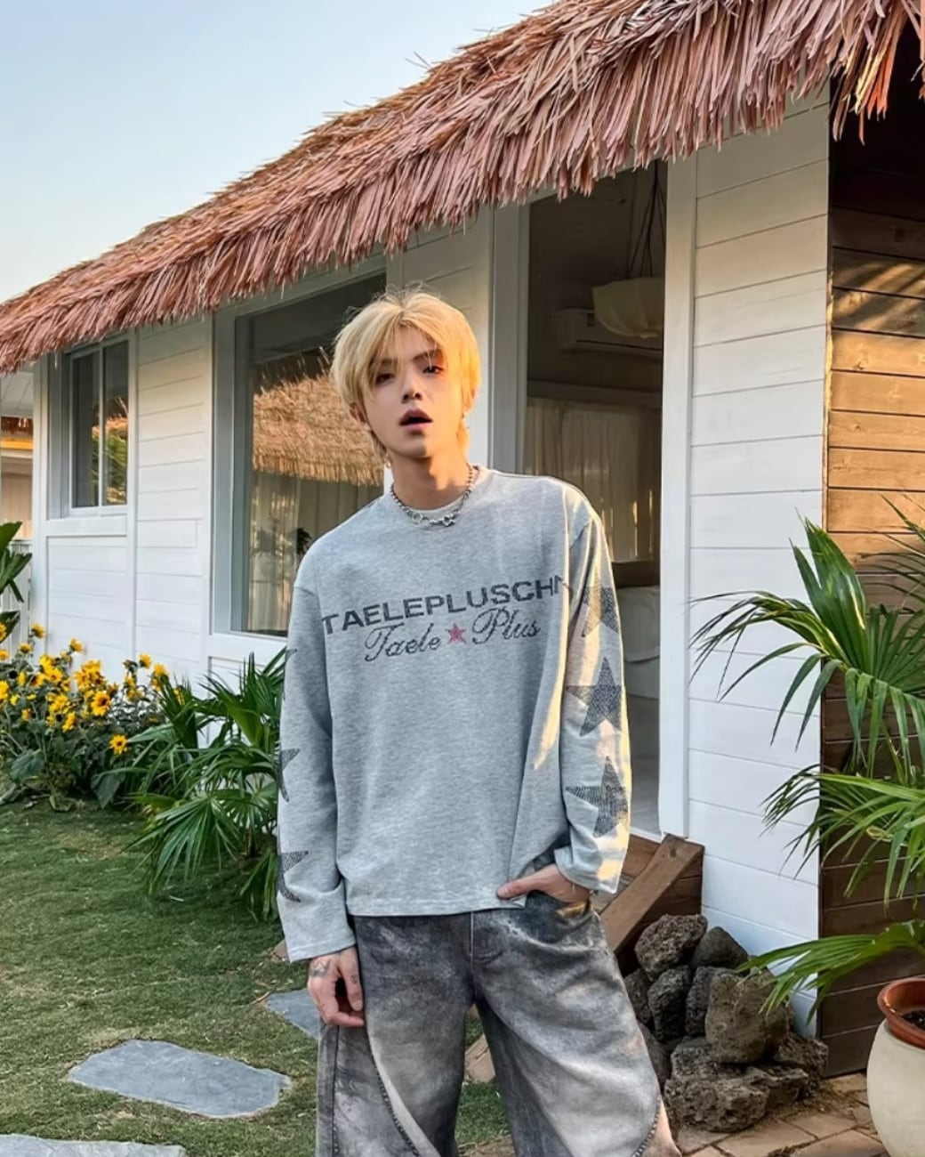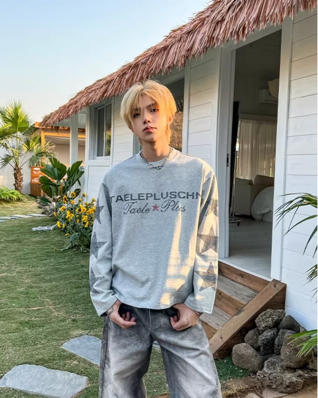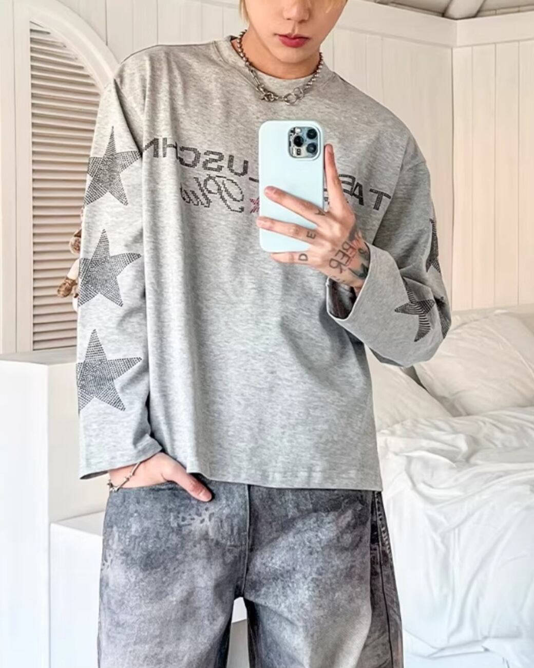 フロントのロゴと袖のスターデザインが印象的な、