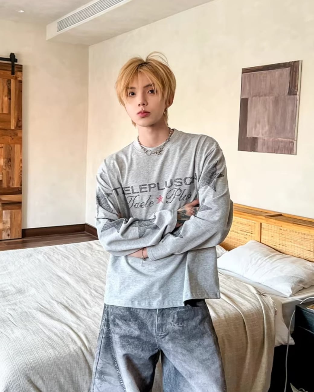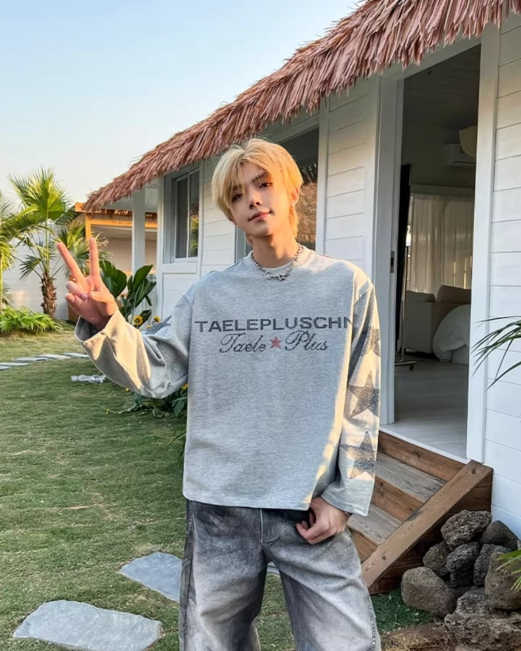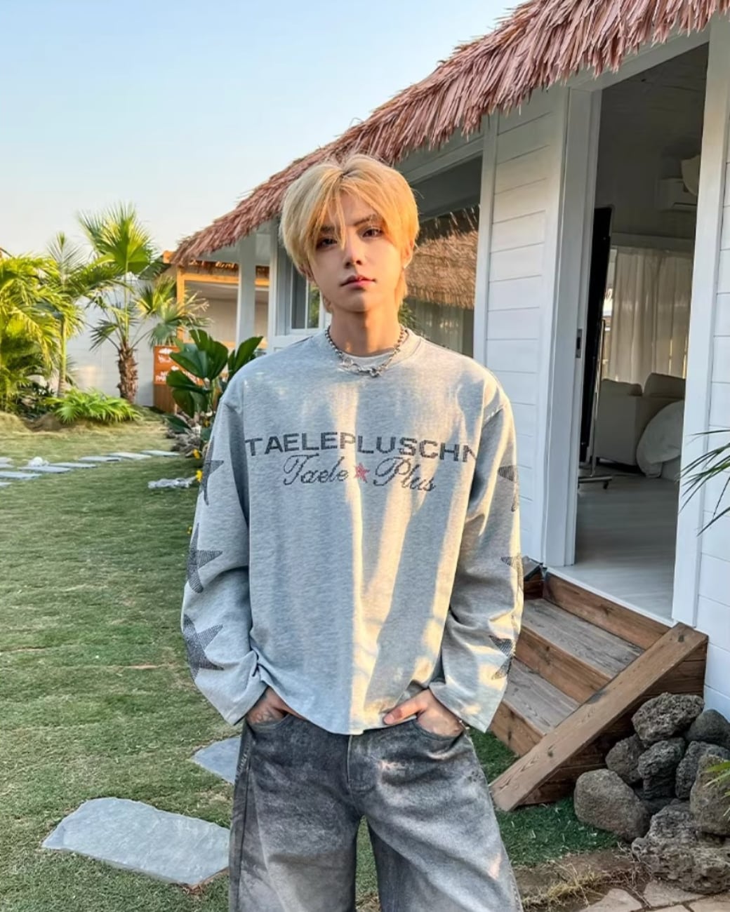 フロントのロゴと袖のスターデザインが印象的な、