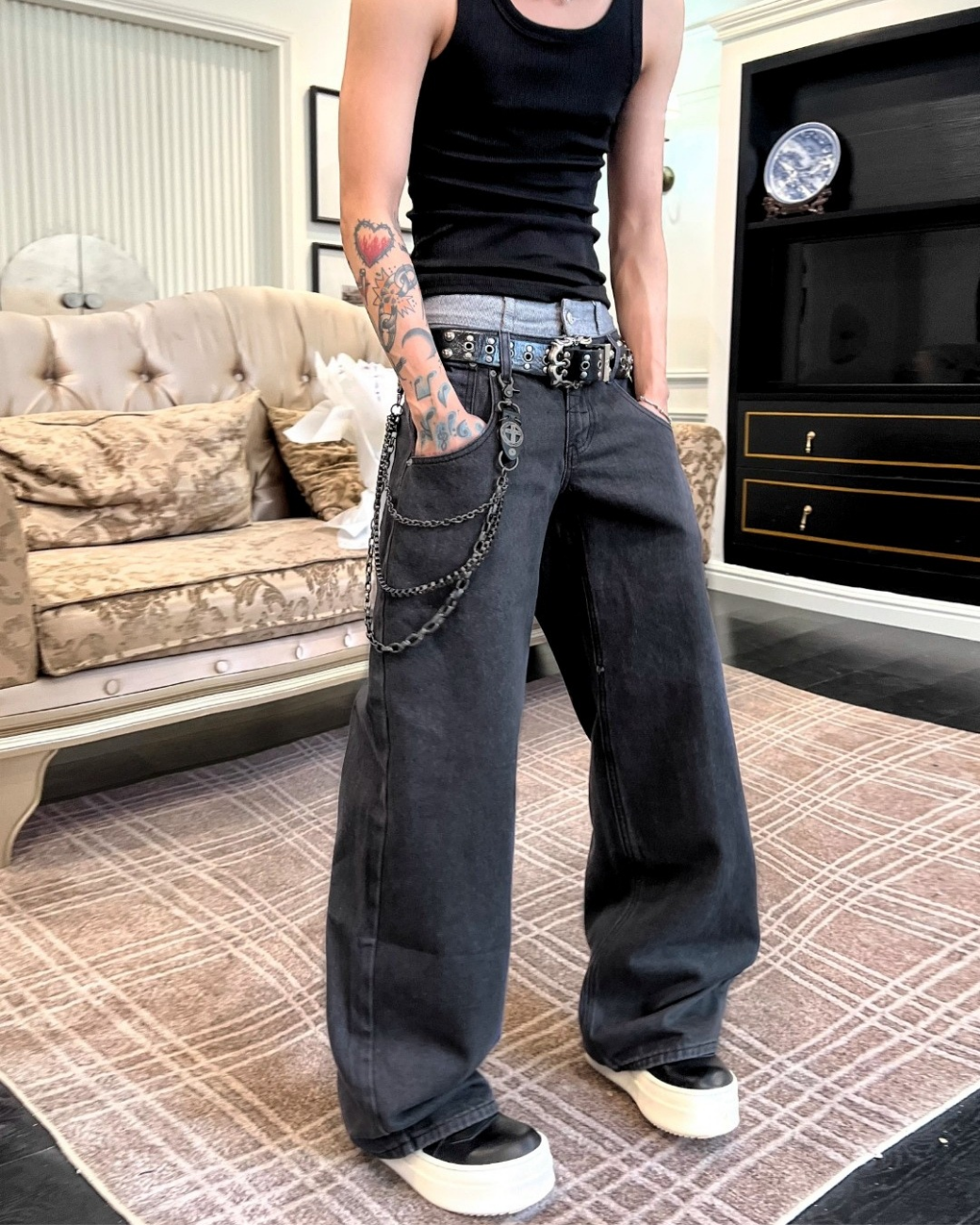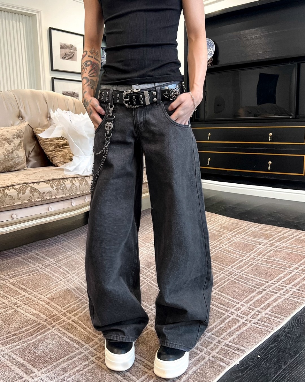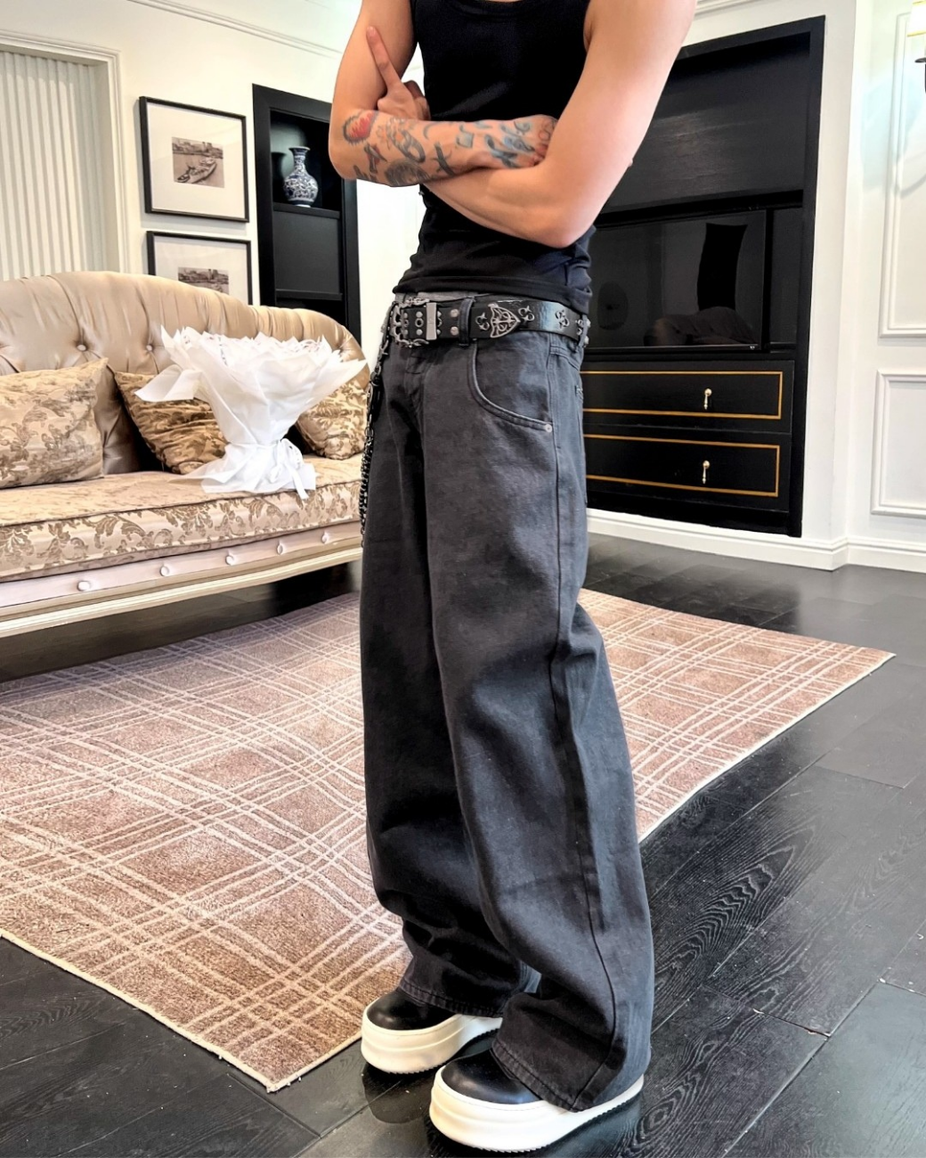 ストリート感のあるシルエットが魅力のブラックデニム。