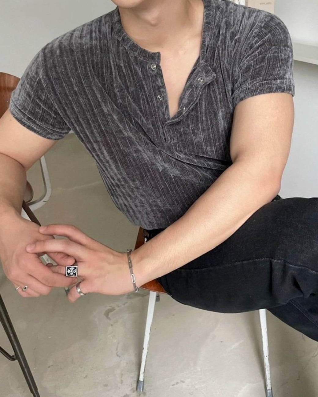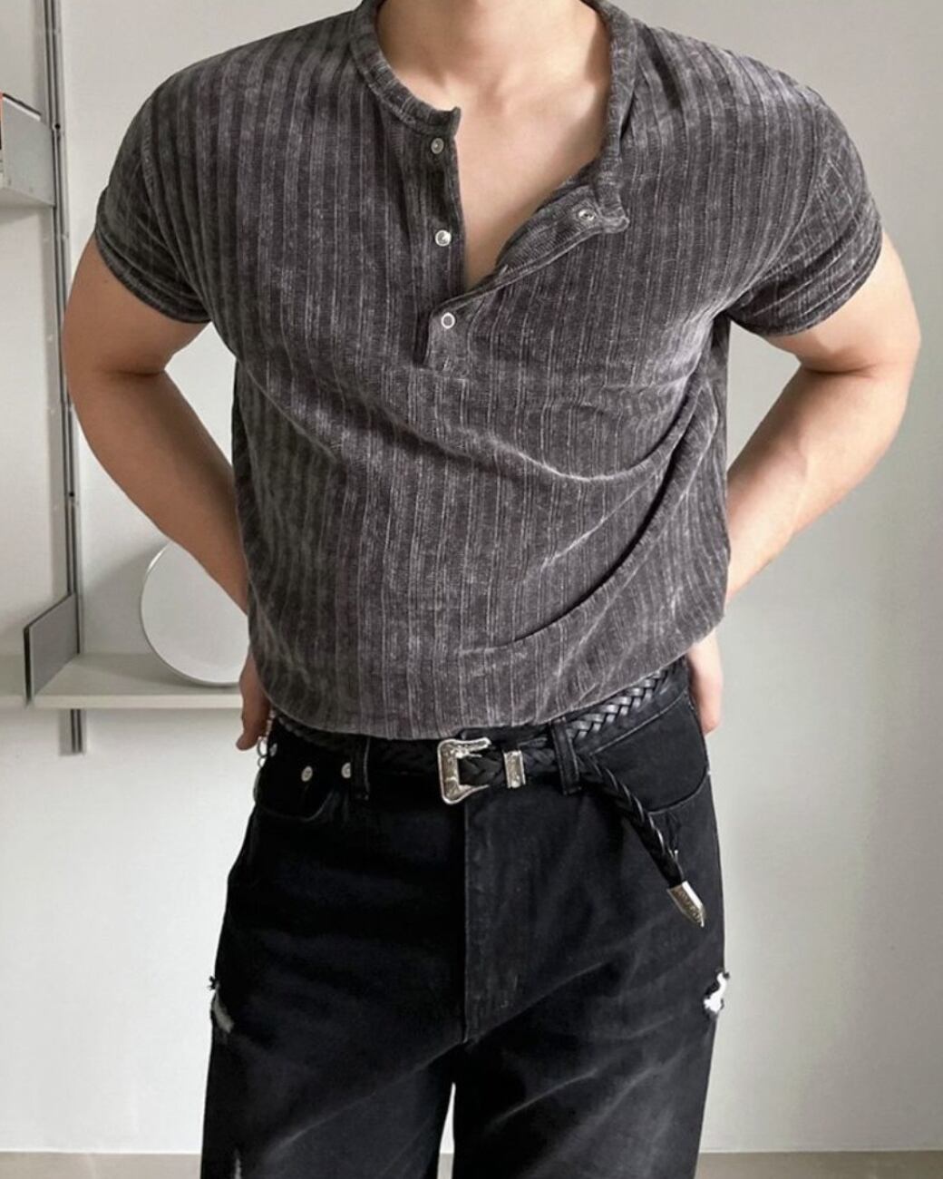 リブヘンリーネックT|Rib Henley Neck Tee 【k191】