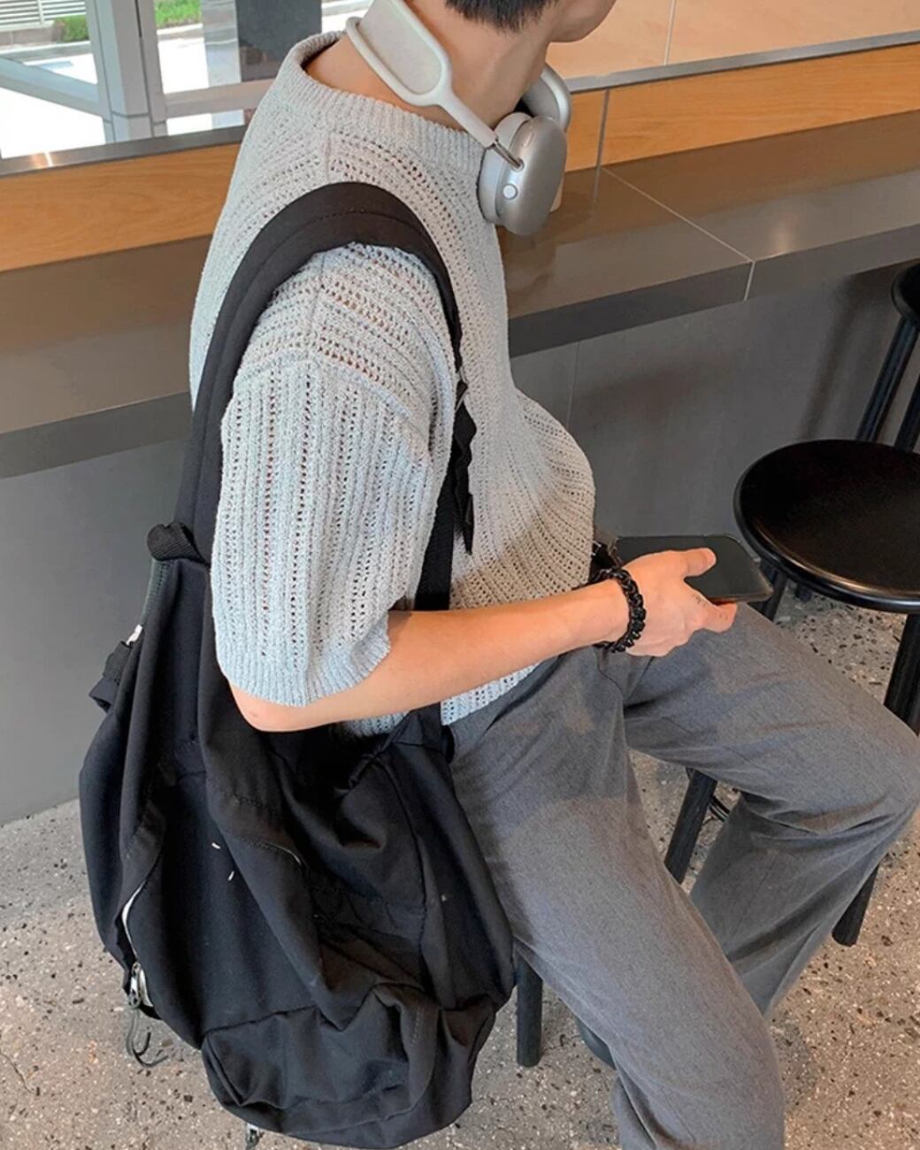見た目にも軽やかな透け感が、シンプルなスタイリングに“抜け”をつくる一枚です。
