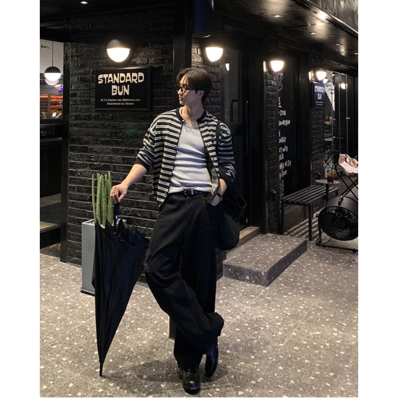 ■ モデル着用トップス:ボーダーニットカーディガン|Border Knit Cardigan【k206】