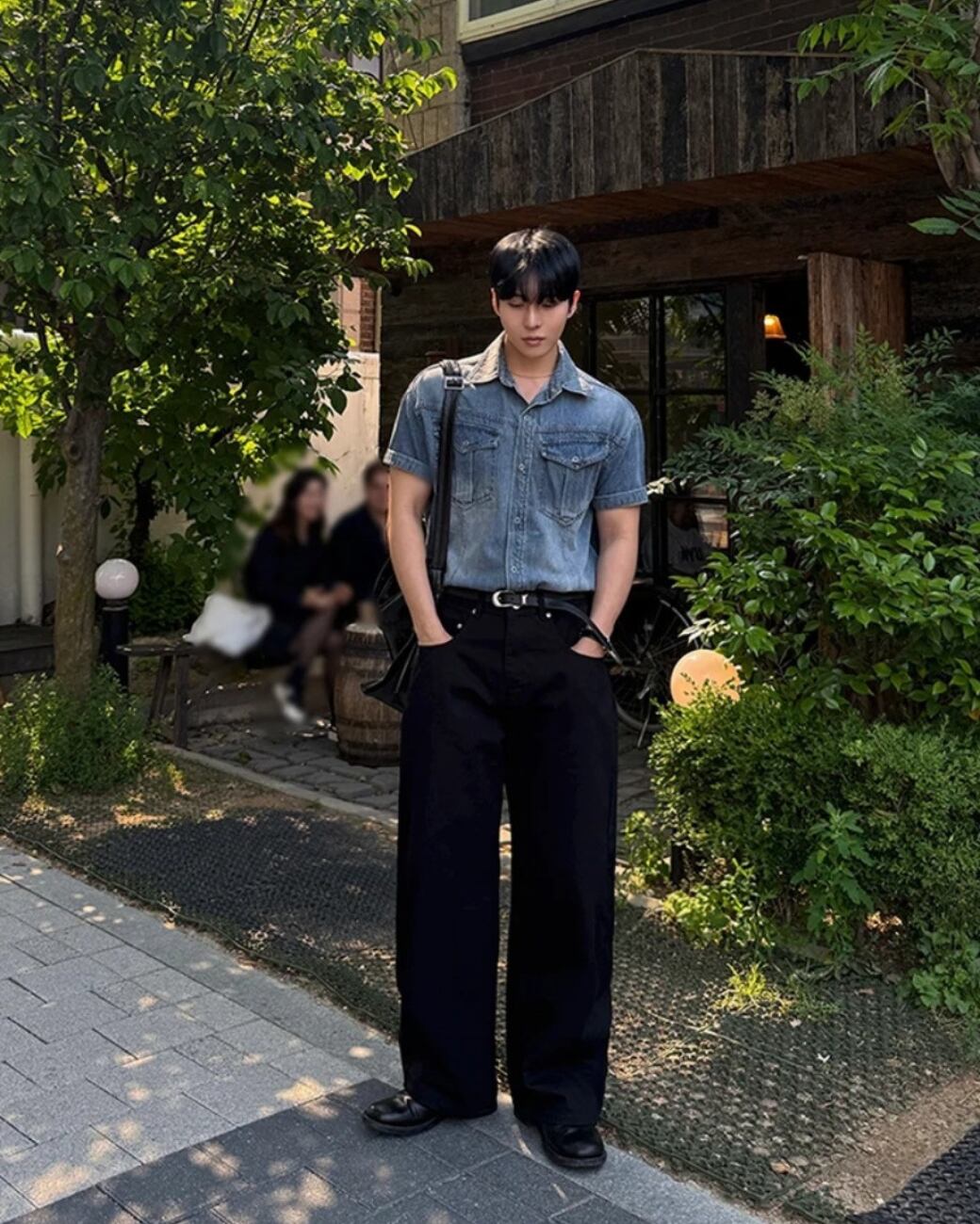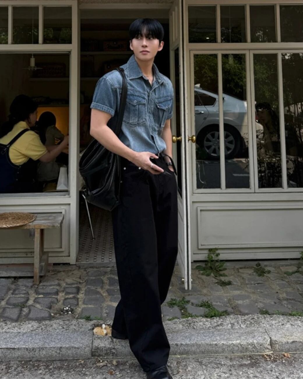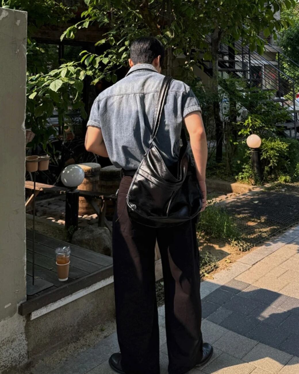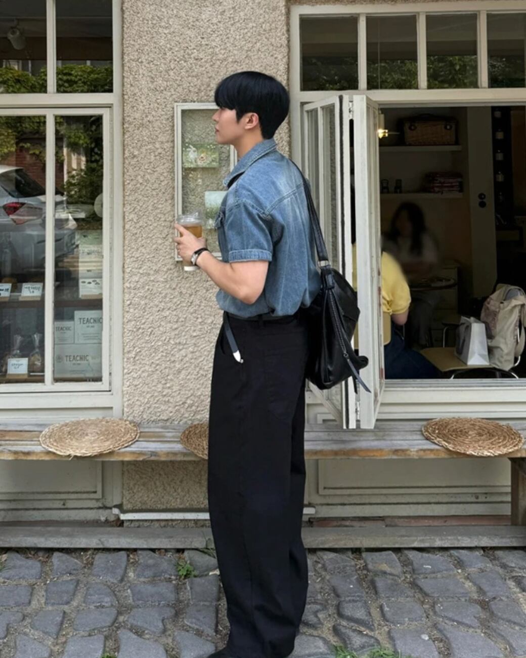 主張しすぎないストレートシルエットが、全体のバランスを整えつつ、落ち着いた大人っぽさを演出します。