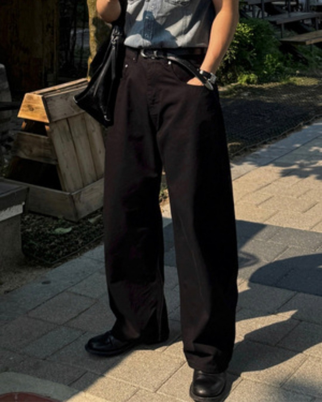 無駄を削ぎ落としたシンプルなデザインで、どんなコーデにも自然に馴染むブラックパンツ。