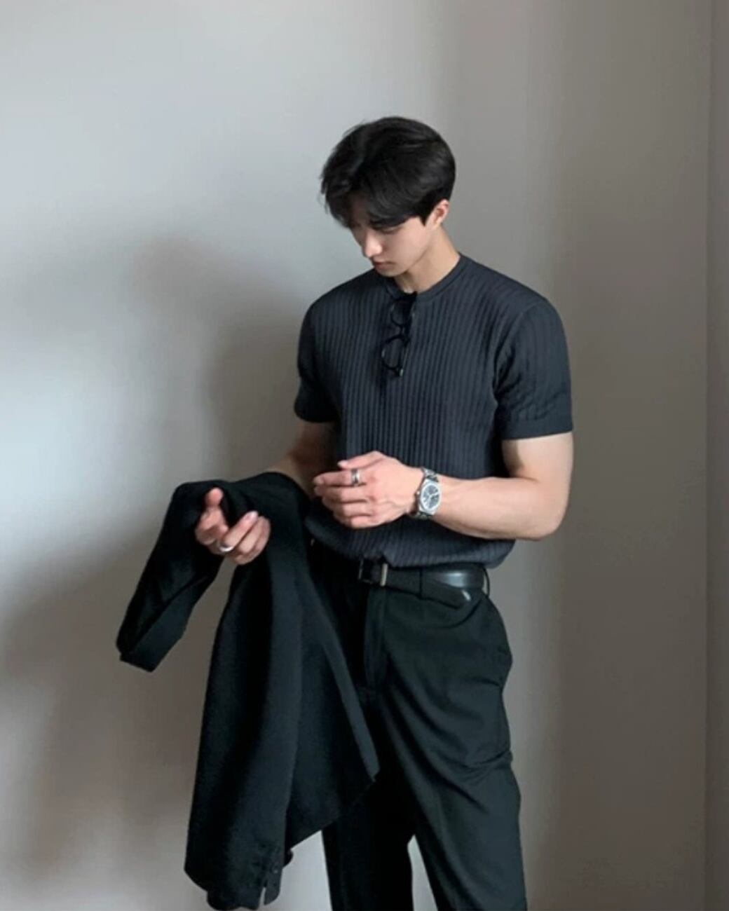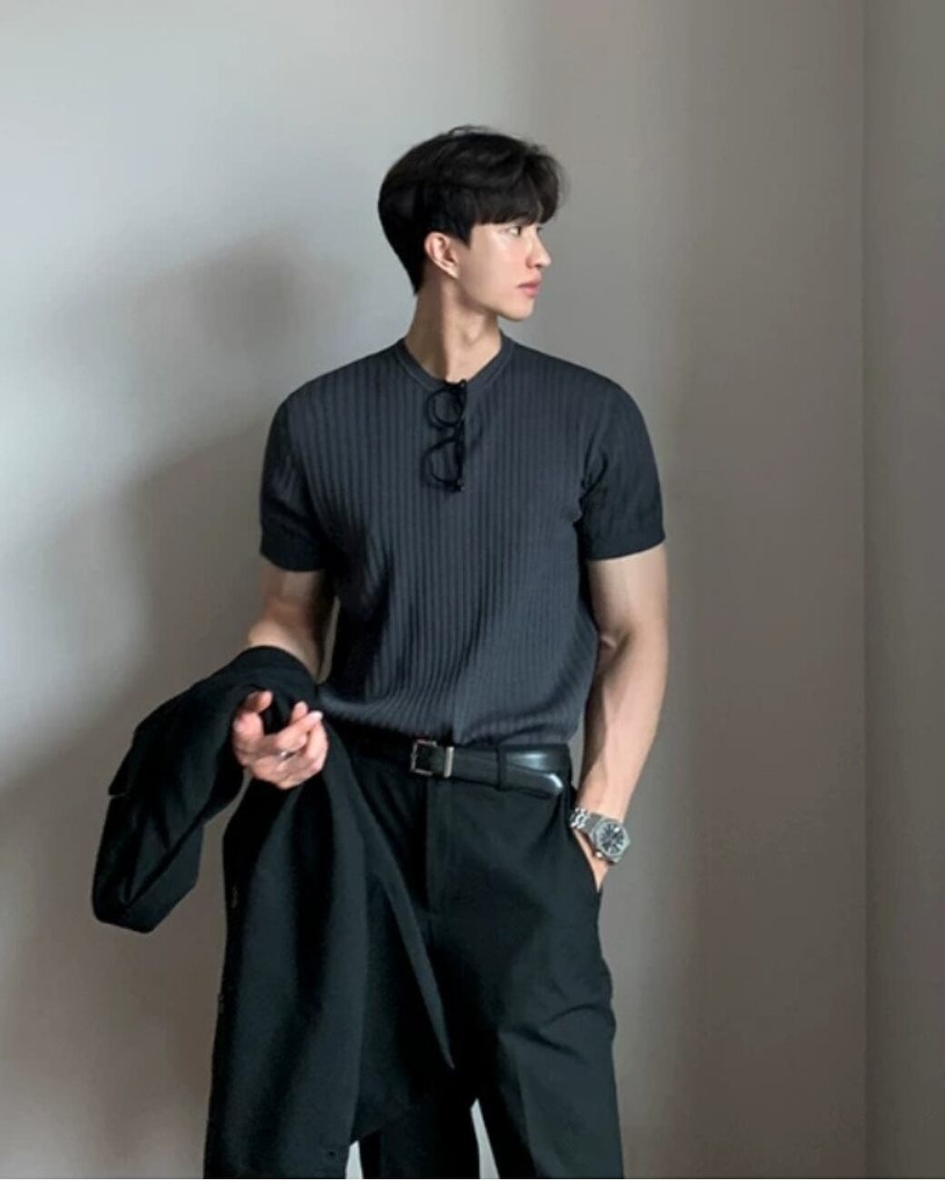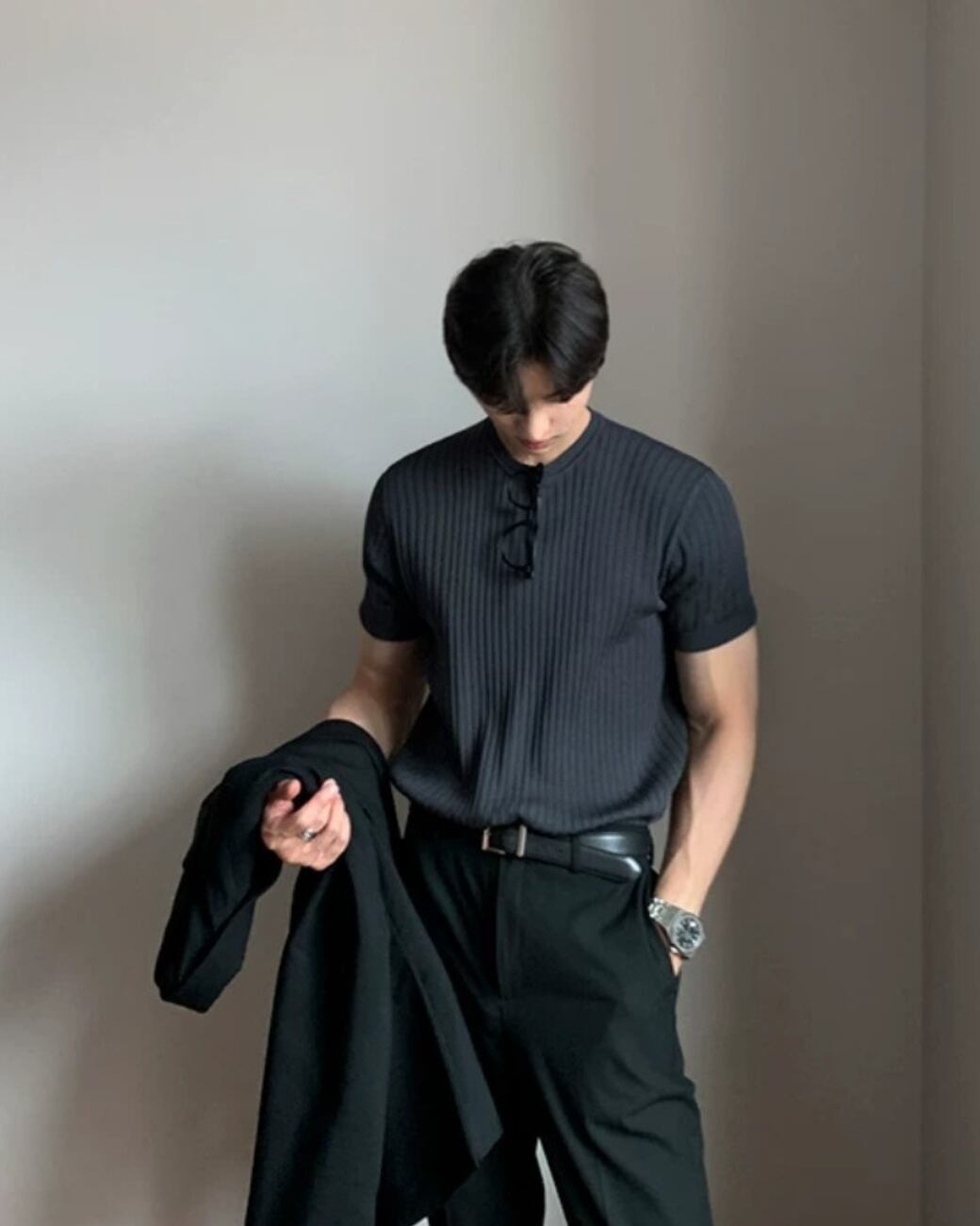 無駄を削ぎ落としたデザインながら、素材感でしっかり雰囲気を出せる一枚です。