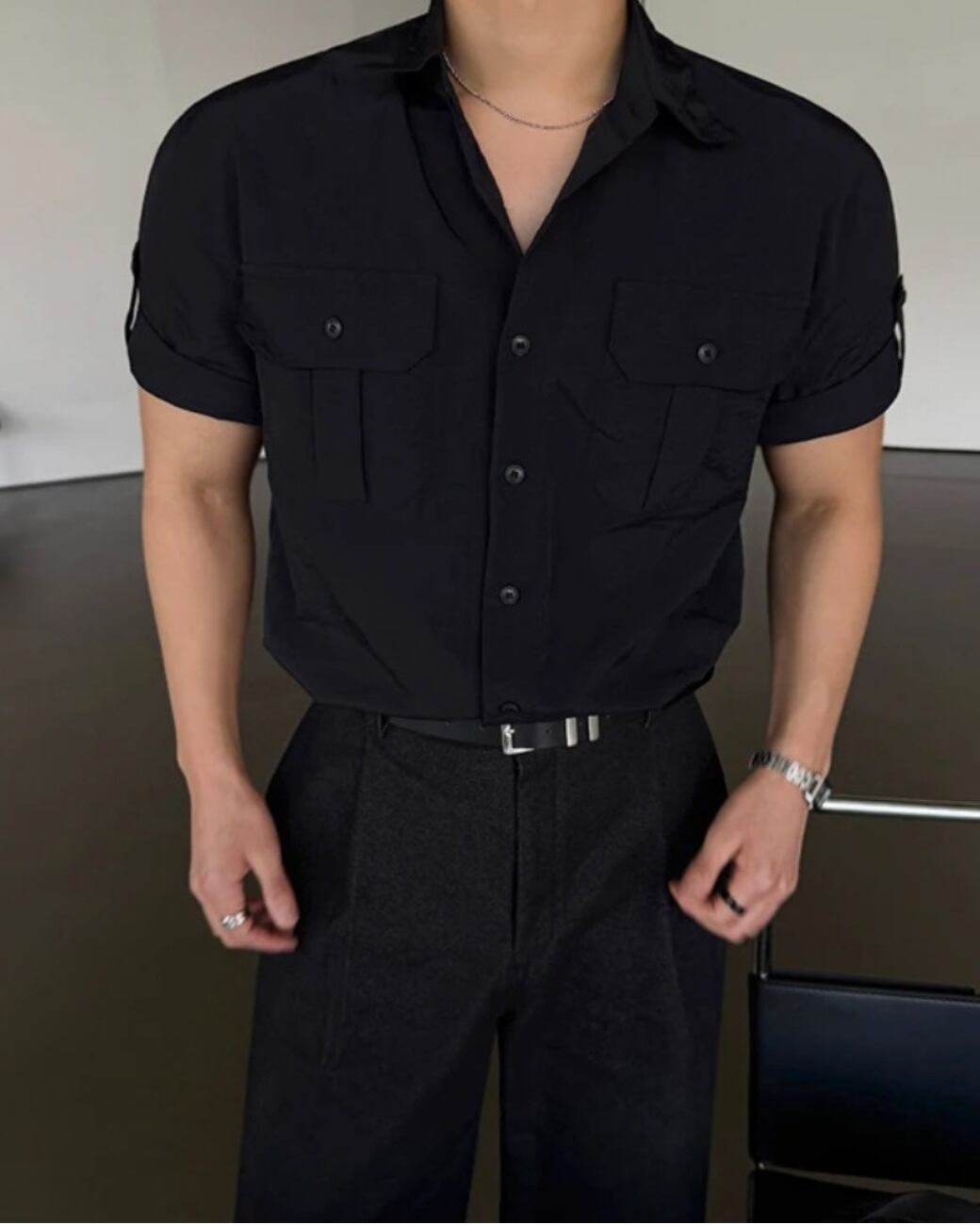 無駄を削ぎ落としたミニマルなシルエットに、ほんの少しのミリタリー要素をプラス。