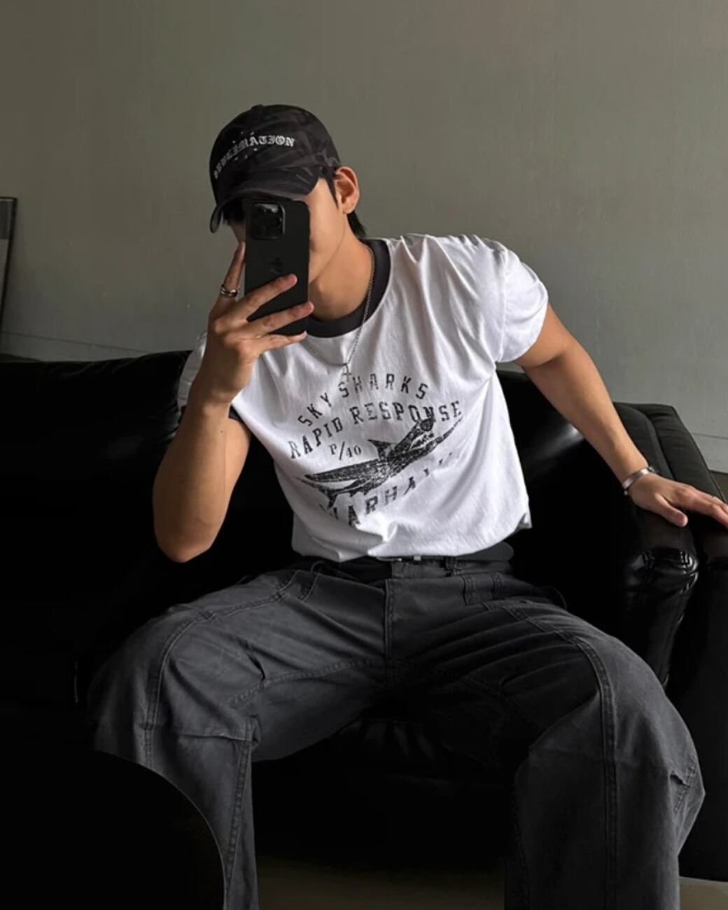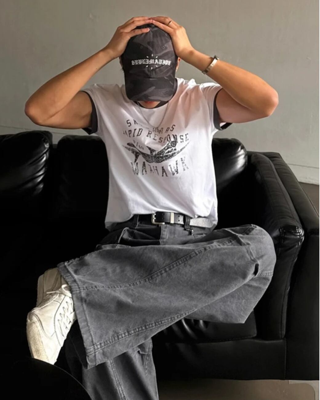 無地Tでは出せない“締まり”が生まれ、全体のバランスが整います。